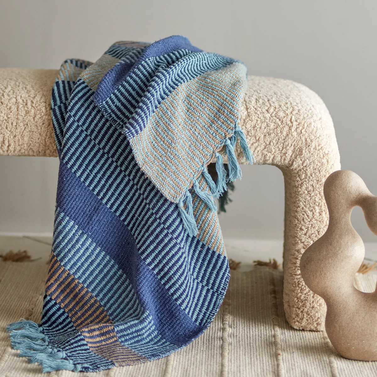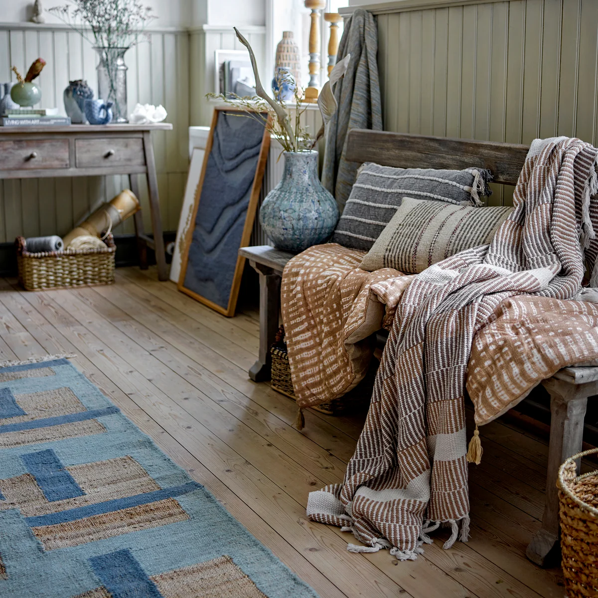 Isnel verleiht jedem Raum, in dem sie ausgelegt wird, ein gemütliches und heimeliges Gefühl, ob im Wohnzimmer auf einem Sessel oder im Schlafzimmer auf dem Bett. Die Fransen an jedem Ende tragen zu dem heimeligen Gefühl der Decke bei.