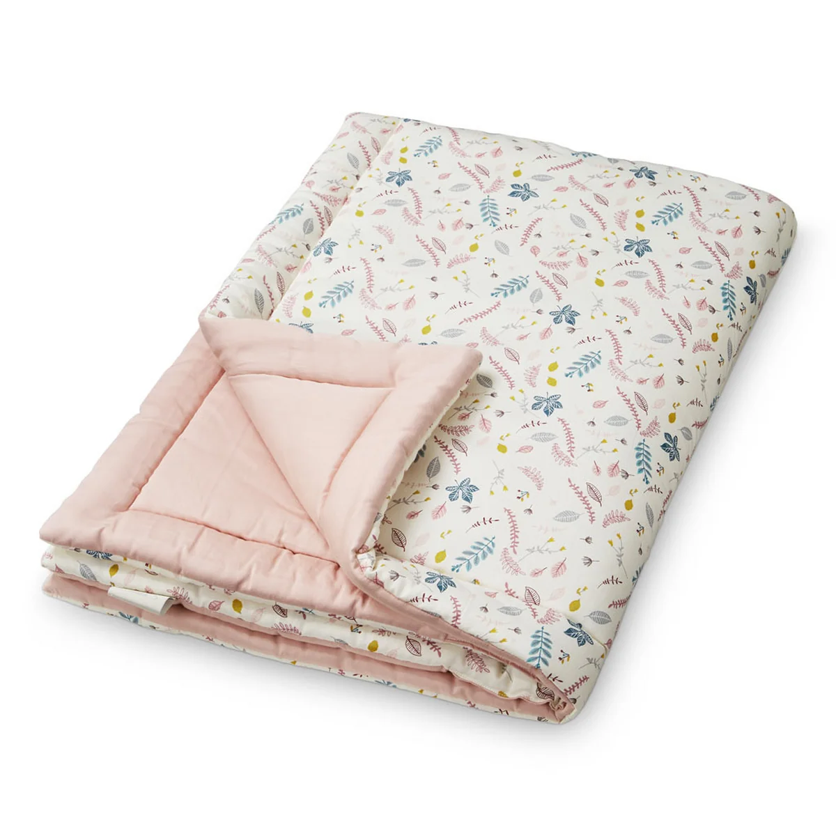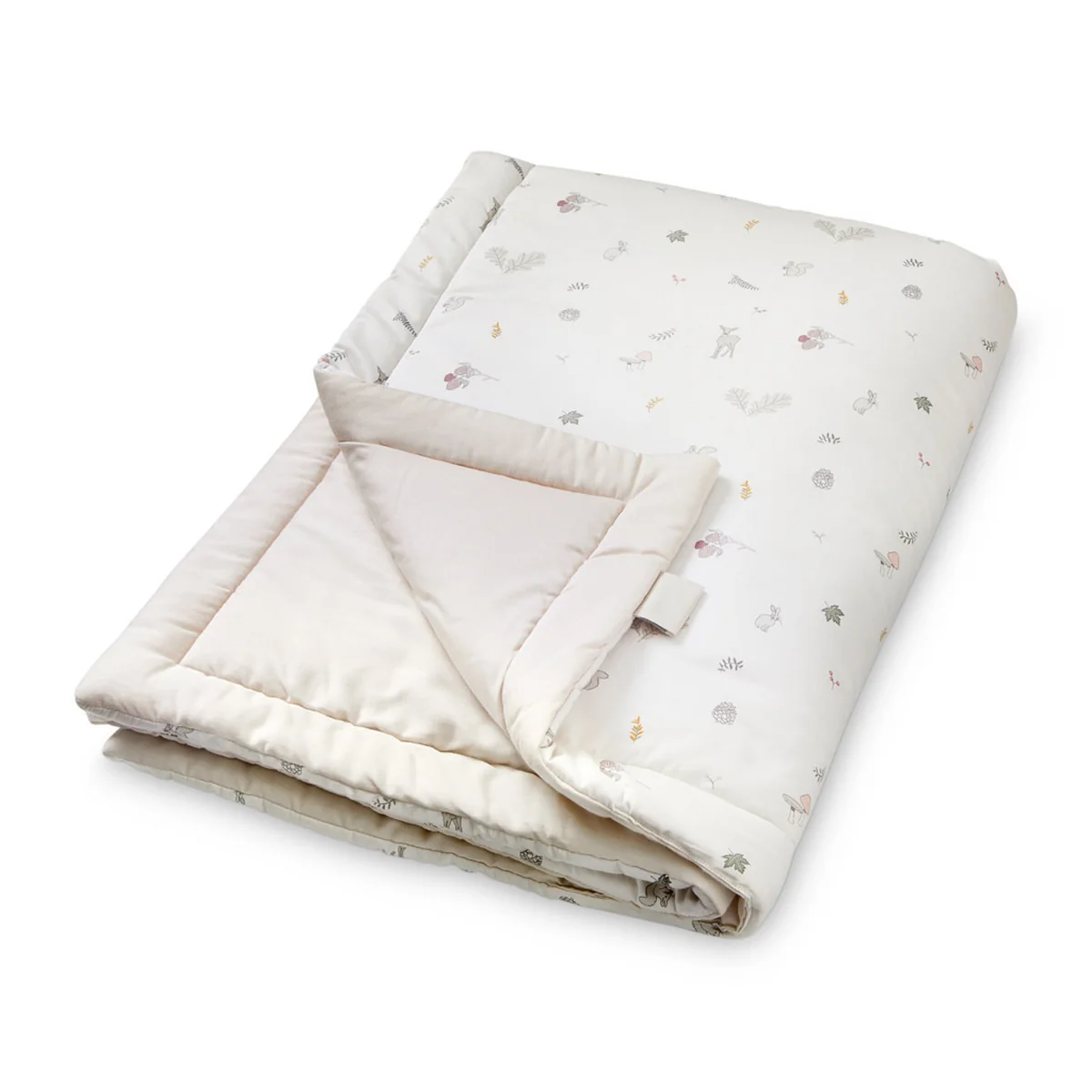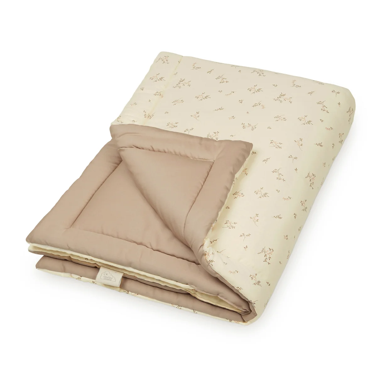 Die Decke aus dem dänischen Hause Cam Cam Copenhagen ist der ideale Partner zum gemütlichen Einkuscheln. Die Steppdecke wird aus OCS-zertifizierter Bio-Baumwolle gefertigt und eignet sich hervorragend, um Babys zuhause oder gar unterwegs einzuwickeln. Sie ist in einer Vielzahl von klassischen Cam Cam Mustern erhältlich. Die Vorderseite ist mit dem jeweiligen Print bedruckt, während die Rückseite passend einfarbig gefärbt ist. Die Steppdecke wird mit Öko-Tex-zertifiziertem Polyester befüllt. Bei Bedarf kann sie bei 30 Grad in der Waschmaschine gereinigt werden. Nicht trocken schleudern, mildes Waschmittel verwenden.