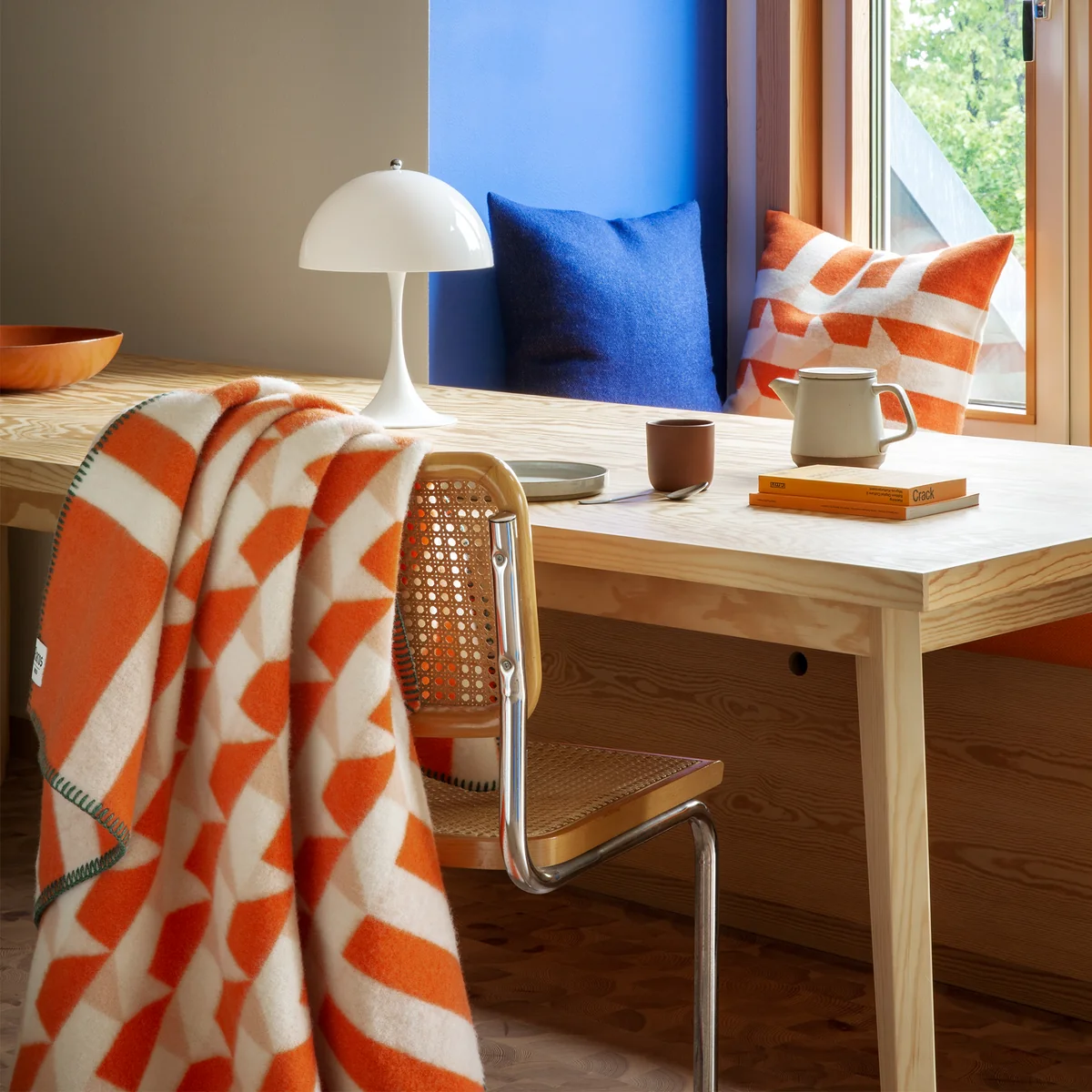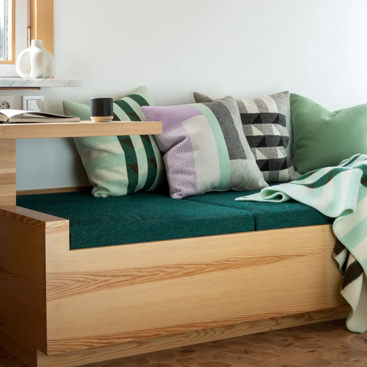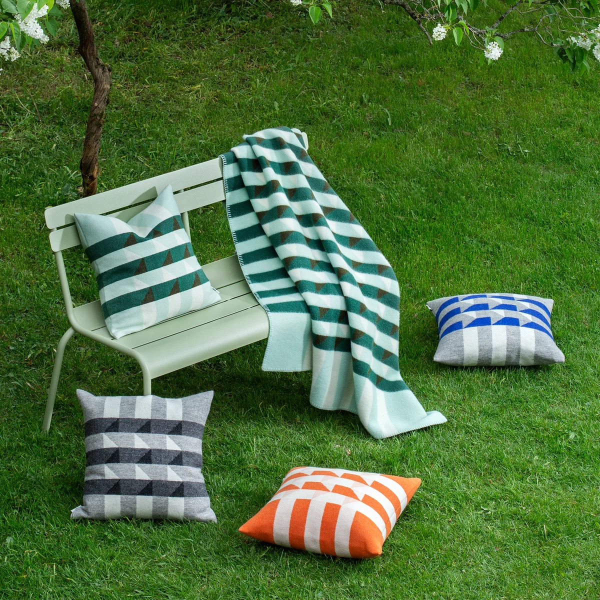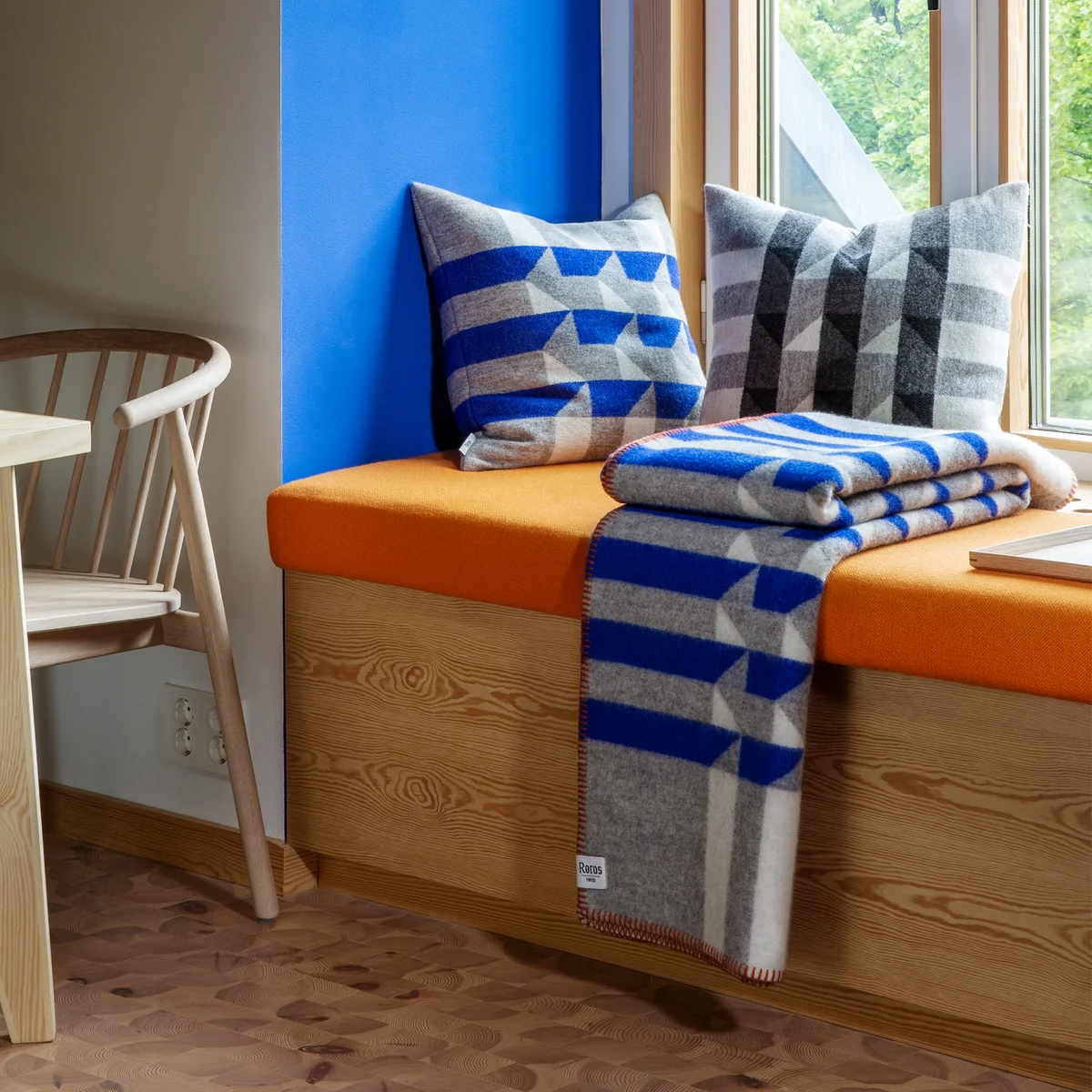 Das KVAM Kissen von Kristine Five Melvær für den Hersteller Røros Tweed zeichnet sich durch seine spielerische Geometrie aus. KVAM arbeitet mit den Grenzen der Möglichkeiten des Jacquard Webens. Das Motiv spielt auf die horizontalen und vertikalen Richtungen des Gewebes an. Die diagonalen Linien sorgen für eine rhythmische Dynamik. Das KVAM Muster ist eine wundervolle Verbindung aus norwegischen und japanischen Motiven. Das 50 x 50 cm Kissen ist in unterschiedlichen Farben erhältlich.