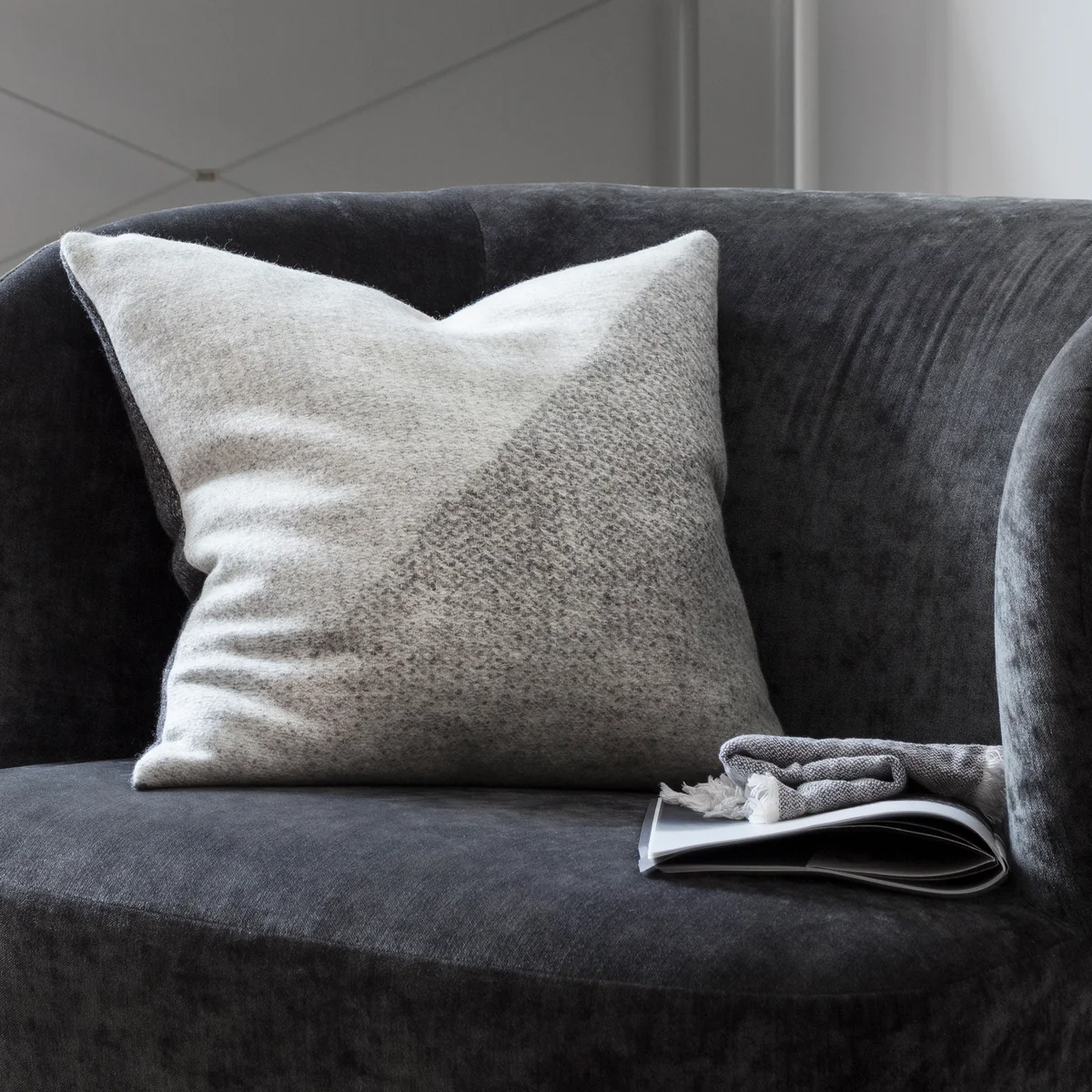 Lammwollkissen mit diagonalen und vertikalen Linien