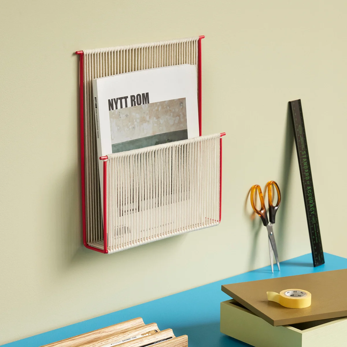 Hübsch Interior - Wand-Magazinhalter, natur / rot