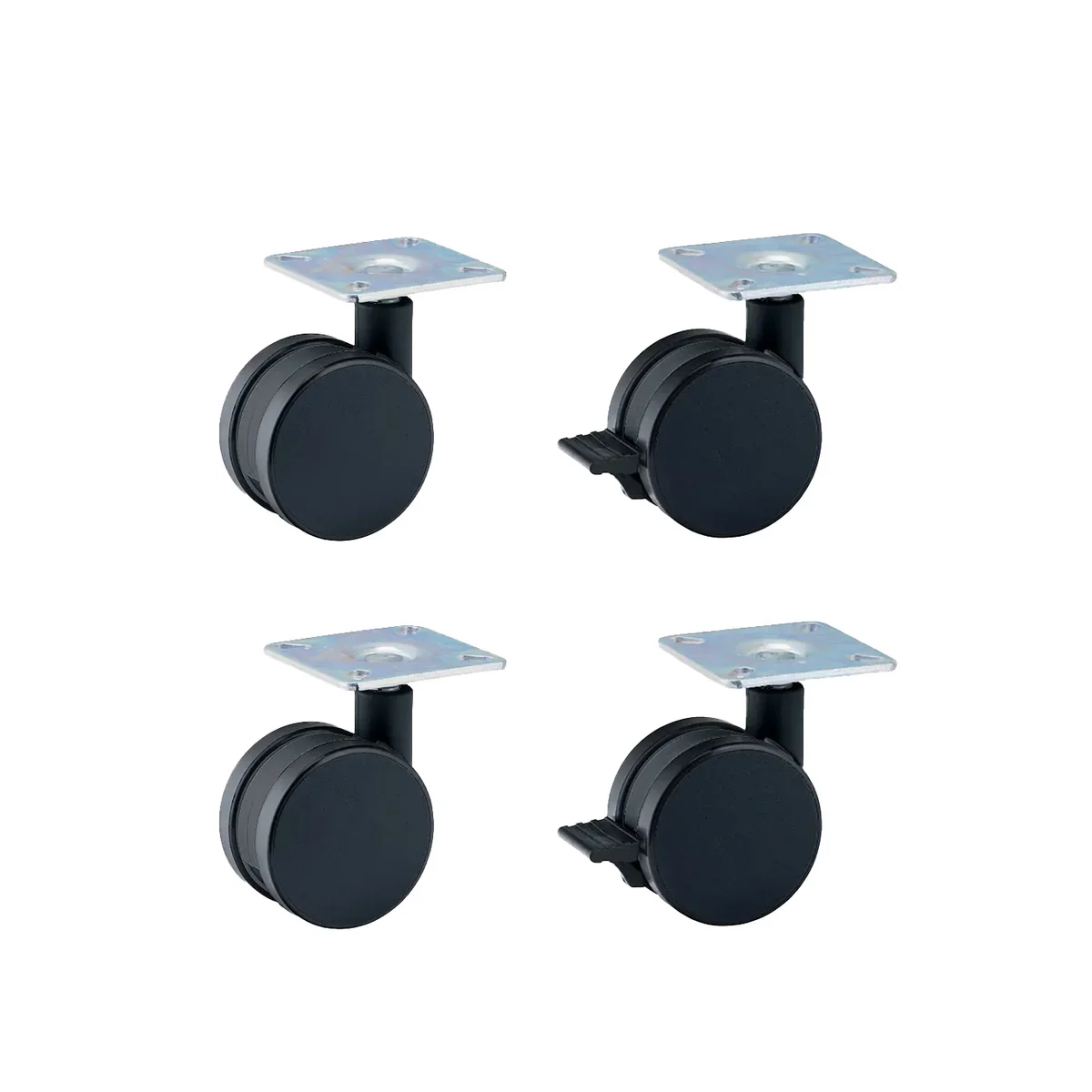 Das 4er-Set Möbelrollen kombiniert hochwertige Verarbeitung mit Funktionalität und Flexibilität. In den Farben Schwarz oder Hellgrau erhältlich, fügen sich die Rollen harmonisch in unterschiedliche Einrichtungsstile ein. Zwei der Rollen sind mit einer Feststellfunktion ausgestattet, um Möbel sicher an der gewünschten Position zu fixieren. Die Montage ist unkompliziert und erfolgt mit den beiliegenden Schrauben für eine stabile Befestigung.