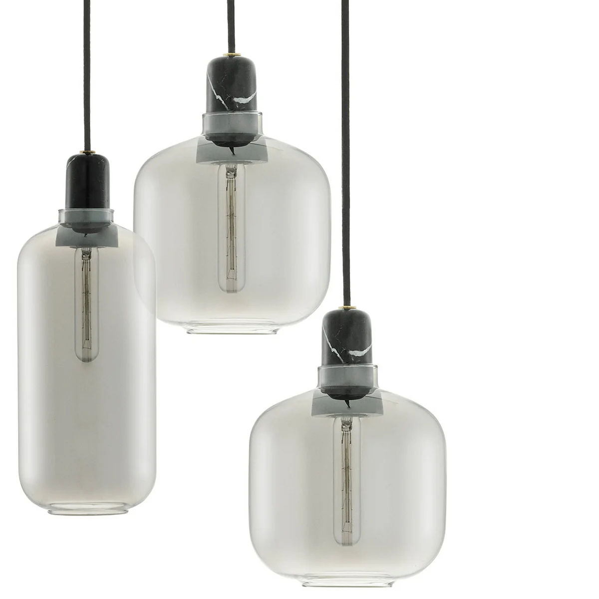 Leuchtenserie mit Hi-Fi-Inspiration: Für Normann Copenhagen hat der dänische Designer Simon Legald die raffinierte Leuchtenserie Amp geschaffen. Glas und Marmor sorgen für optische Leichtigkeit und sinnliche Schwere. Eine zugleich nostalgische und moderne Optik. Das Glas für die Amp Pendelleuchte kann nachbestellt werden, falls es einmal kaputt gehen sollte und ist in jeder Form der Pendelleuchten-Serie und in jeder passenden Farbe erhältlich.