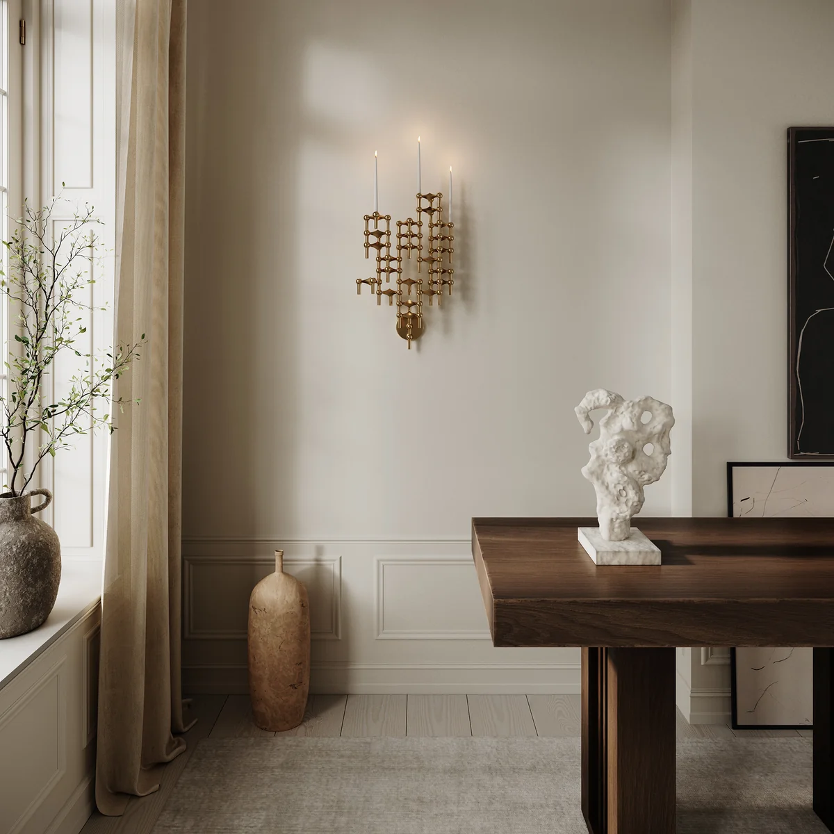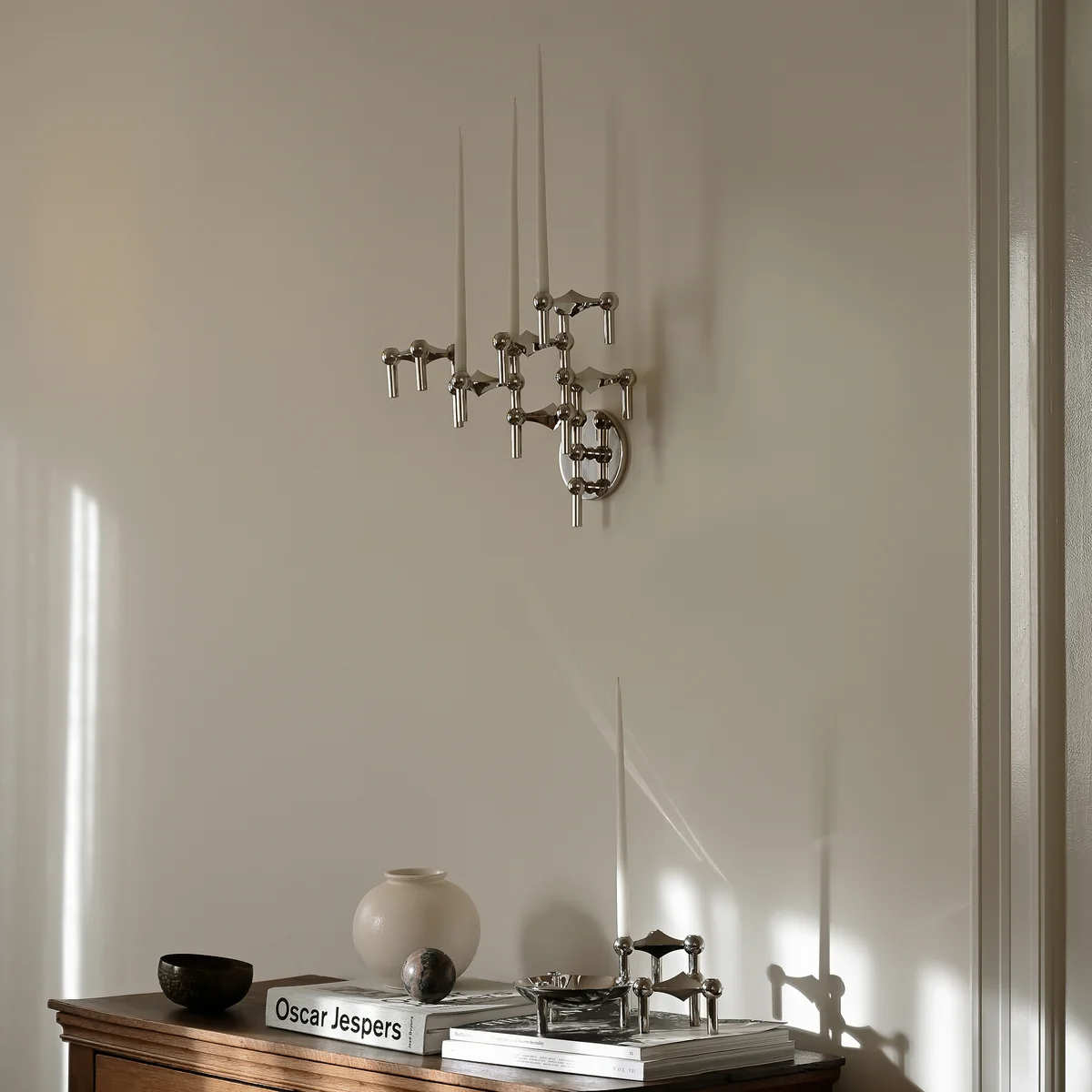 Egal, ob im Wohnzimmer, Schlafzimmer oder Flur, diese elegante Wandhalterung wird zum Blickfang in jedem Raum. Erleben Sie die Magie des Kerzenscheins und verschönern Sie Ihre Wände mit unserer exquisiten Wandhalterung für Kerzenhalter von Stoff Nagel.