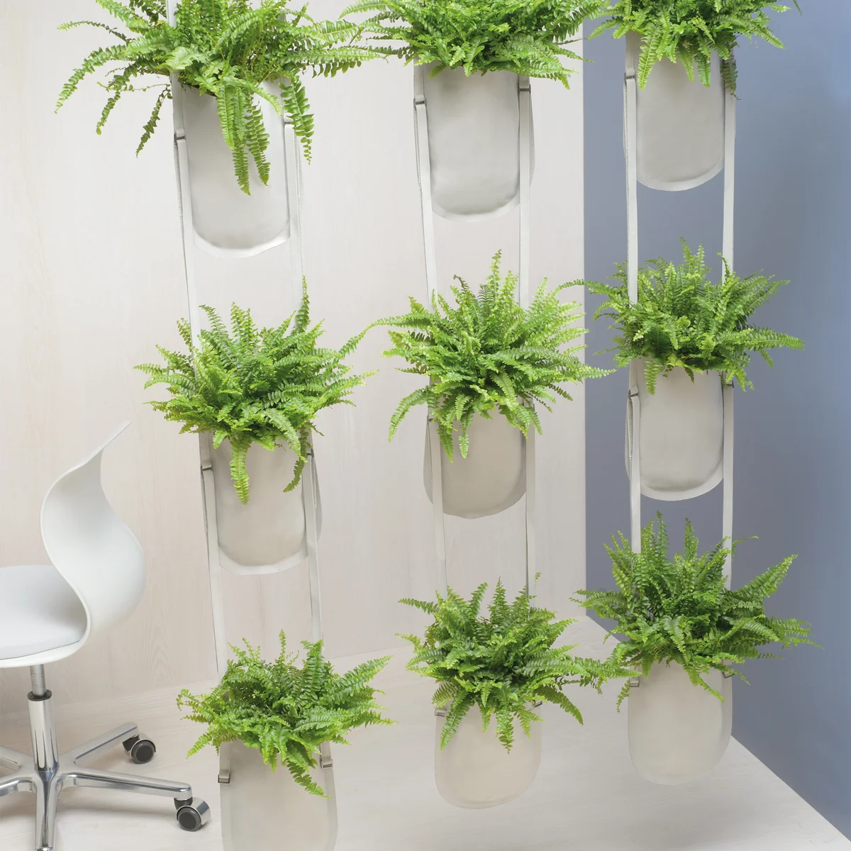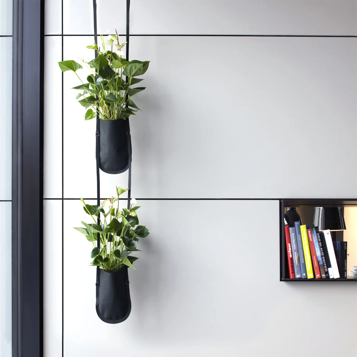 Die textilen Pflanzbehälter sind praktisch, pflegeleicht und eröffnen ein komplettes Spektrum neuer Möglichkeiten für die Raumgestaltung mit Pflanzen. Durch Klettverschlüsse an den Trageriemen werden die Pflanztaschen an Wand- und Deckenaufhängungen von Urban Garden sowie an Stangen, Haken, Ösen, Balken oder Geländern angebracht.