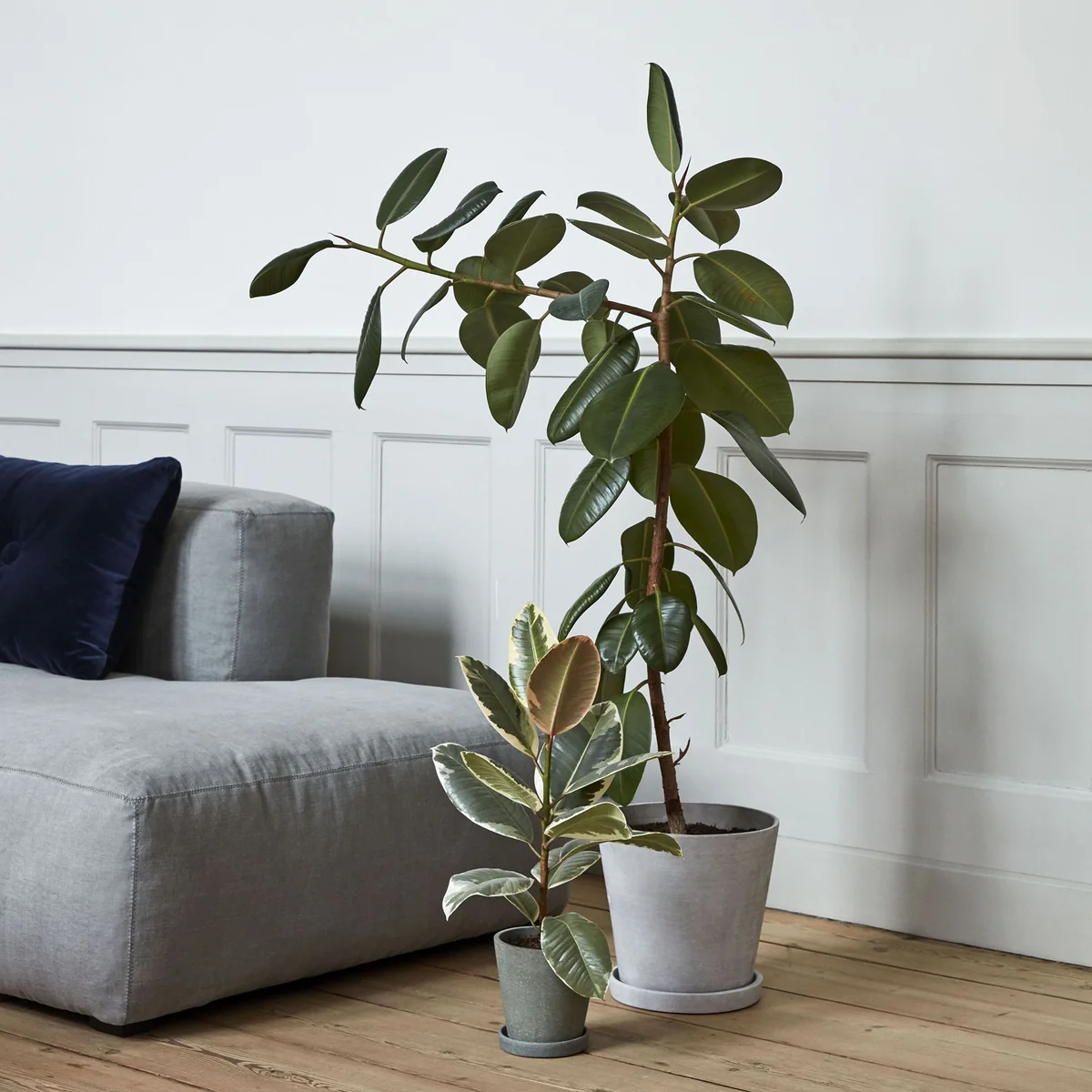 HAY fertigt den Blumentopf aus Polystone, einem Kunststoff, der wasserabweisend und resistent gegen Witterungseinflüsse und Kratzer ist. Das spezielle Material erzeugt beim Blumentopf mit Untersetzer den Eindruck, als sei er aus poliertem Stein gefertigt.