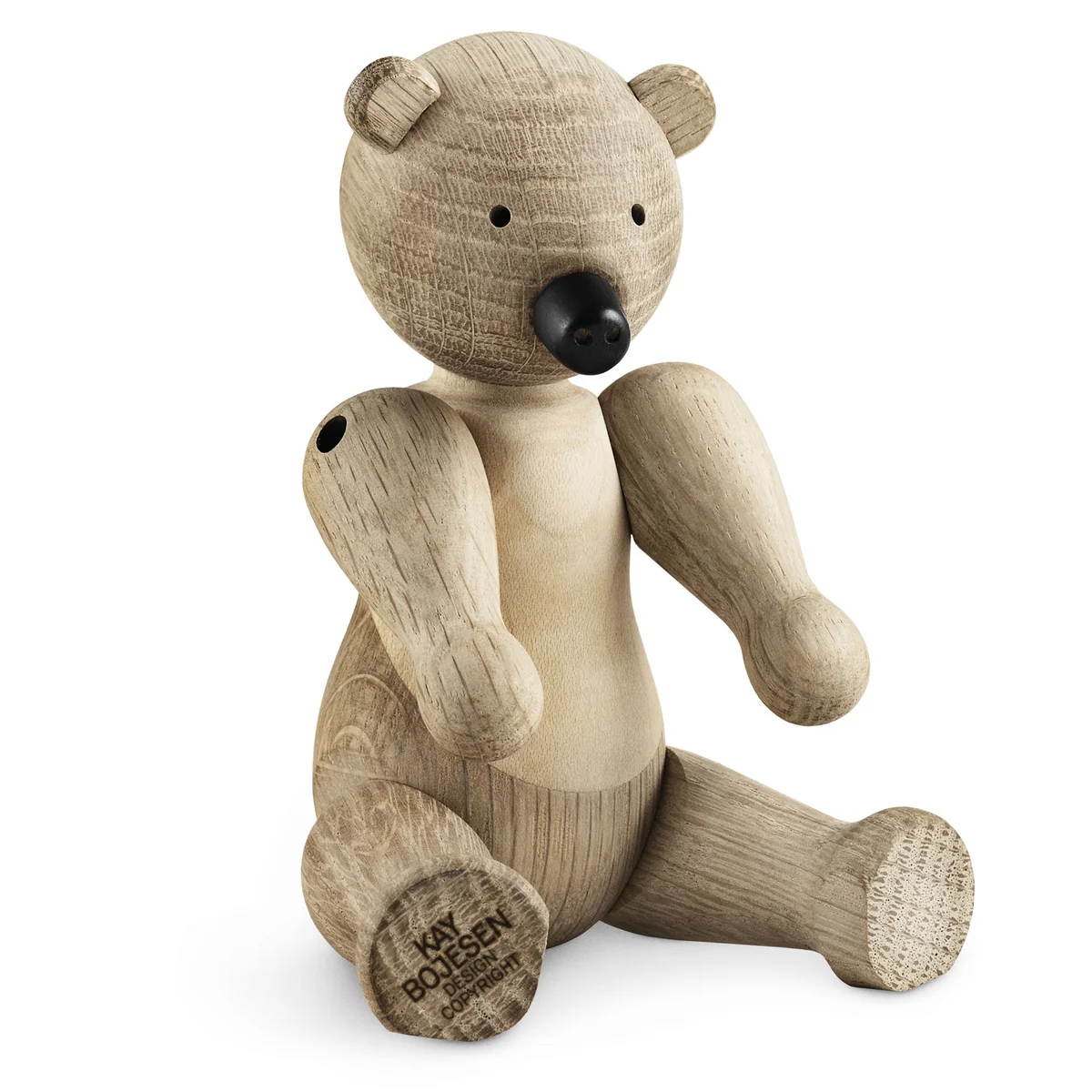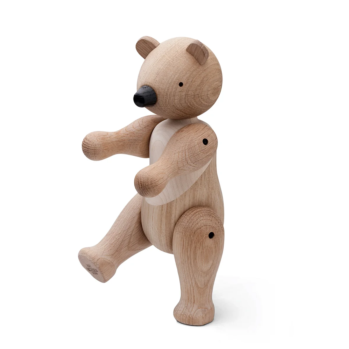 Kay Bojesens Bär besteht aus Eichen- und Ahornholz. Die hervorragende Verarbeitung und das hochwertige Holz bescheren Spielspaß über Generationen hinweg. Der Holz-Bär ist Teil einer Kollektion von Holz-Tieren, die der Designer Kay Bojesen zwischen 1935 und 1957 entworfen hat. Das dänische Unternehmen Rosendahl Design Group stellt die Holz-Tiere heute in enger Zusammenarbeit mit Kay Bojesens Familie her.