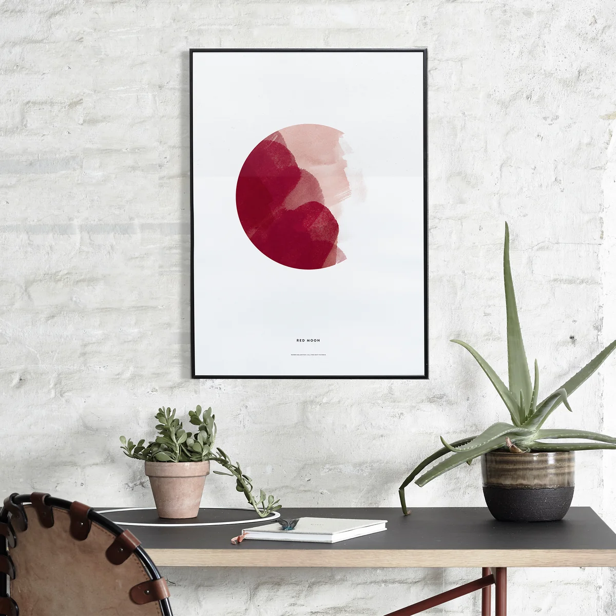 Das Poster „Red Moon“ wurde von dem skandinavischen Grafik-Design-Studio All way to Paris entworfen. Das Designstudio ist bekannt für seine starke Grafik und ihre weichen, eleganten Details. Die Moon-Serie veranschaulicht durch schöne Aquarellmalereien verschiedene Phasen und Gesichter des Mondes. Die Farbe Rot steht für die 2. meteorologische Jahreszeit, den Sommer, und erzählt so seine einzigartige Geschichte.