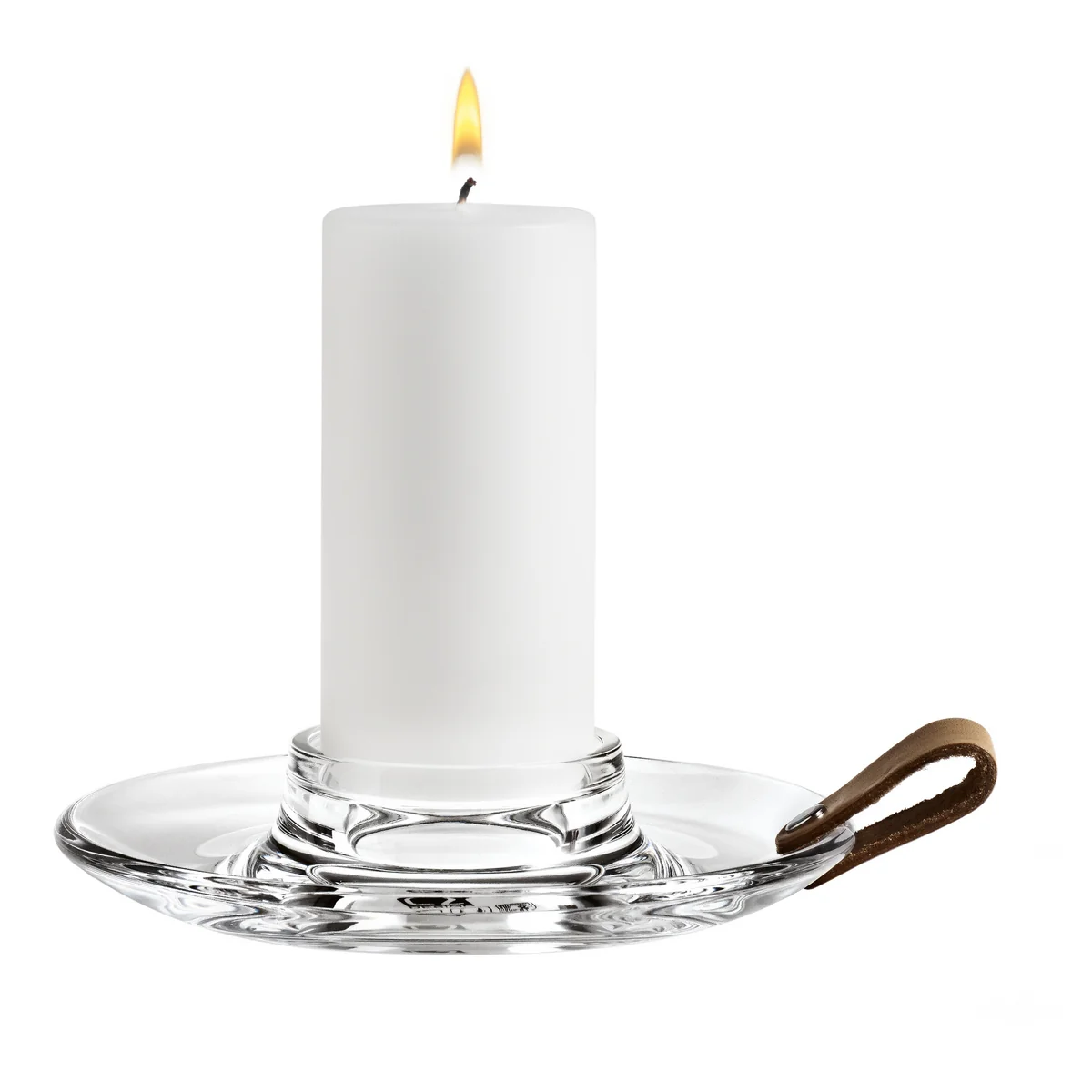 Der Blockkerzenhalter aus Glas mit charakteristischer Lederschlaufe ist Teil der beliebten „Design with Light“ Serie von Holmegaard. Designerin Maria Berntsen kreierte für die Serie besondere Glas-Objekte, die mit Kerzen für gemütliche Stimmung sorgen.