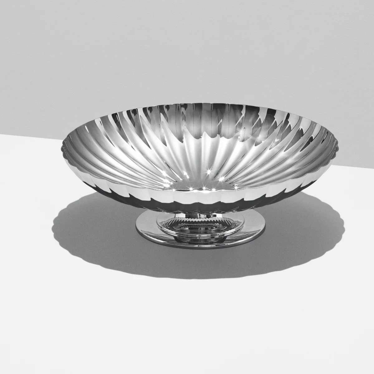 Der schwedische Designer Sigvard Bernadotte ist bereits 2002 verstorben. Das Team von Georg Jensen hat sich von seinen Ideen inspirieren lassen und der Serie diese gelungene Schale hinzugefügt. Der hochpolierte Edelstahl wirkt aufgrund der Wölbungen wie Kristall und verleiht dem Designobjekt eine besondere Aura. Dekorationsartikel oder frisches Obst spiegeln sich im Durchmesser von 28 cm. Ein klassisches Design im zeitlos skandinavischem Stil für die Tafel oder als Aufbewahrungsort für kleine, wertvolle Dinge.