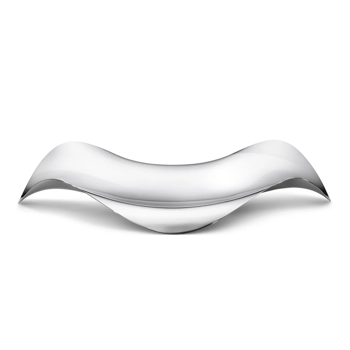 Mit der Cobra Schale hat Wortmann die fließende Formensprache der Kollektion von Georg Jensen in einen neuen Kontext übersetzt. Die Form schlängelt sich wie die namensgebende Cobra geschmeidig über den Tisch. Durch ihre skulpturale Form eignet sich die Georg Jensen Cobra Schale perfekt als freistehende Deko-Schale, aber auch als Obstschale oder für edle Snacks ist die Edelstahlschale von Georg Jensen wunderbar geeignet.