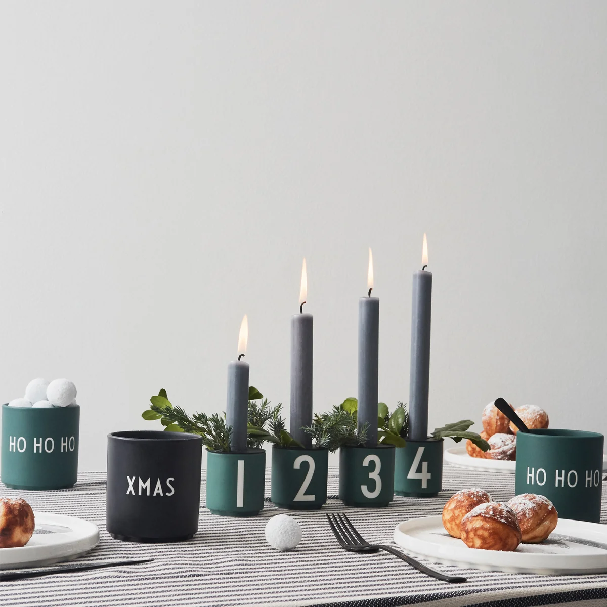 Die markanten Zahlen, die die Becher schmücken, wurden 1937 von dem dänischen Designer Arne Jacobsen entworfen. Ursprünglich für die interne Beschriftung des Aarhus Rathauses, zieren die Buchstaben, Zahlen und Zeichen nun vielfältige Heimtextilien, Geschirr und Büro-Utensilien von Design Letters. Modernes und spielerisches Design für Wortakrobaten, Grafik- und Design-Liebhaber.
