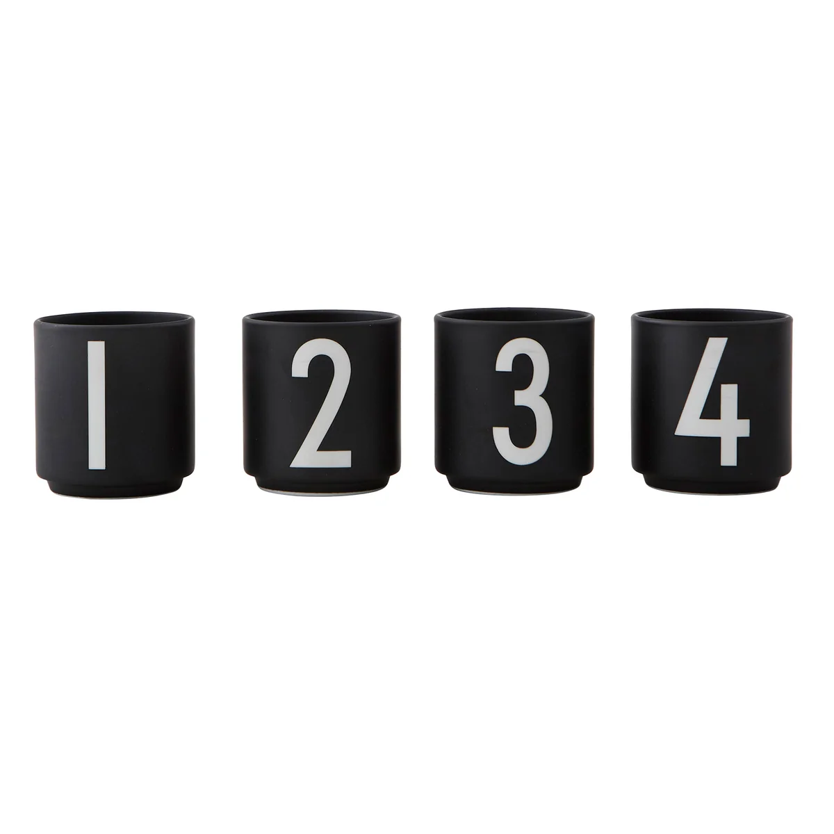 Die markanten Zahlen, die die Becher schmücken, wurden 1937 von dem dänischen Designer Arne Jacobsen entworfen. Ursprünglich für die interne Beschriftung des Aarhus Rathauses, zieren die Buchstaben, Zahlen und Zeichen nun vielfältige Heimtextilien, Geschirr und Büro-Utensilien von Design Letters. Modernes und spielerisches Design für Wortakrobaten, Grafik- und Design-Liebhaber.