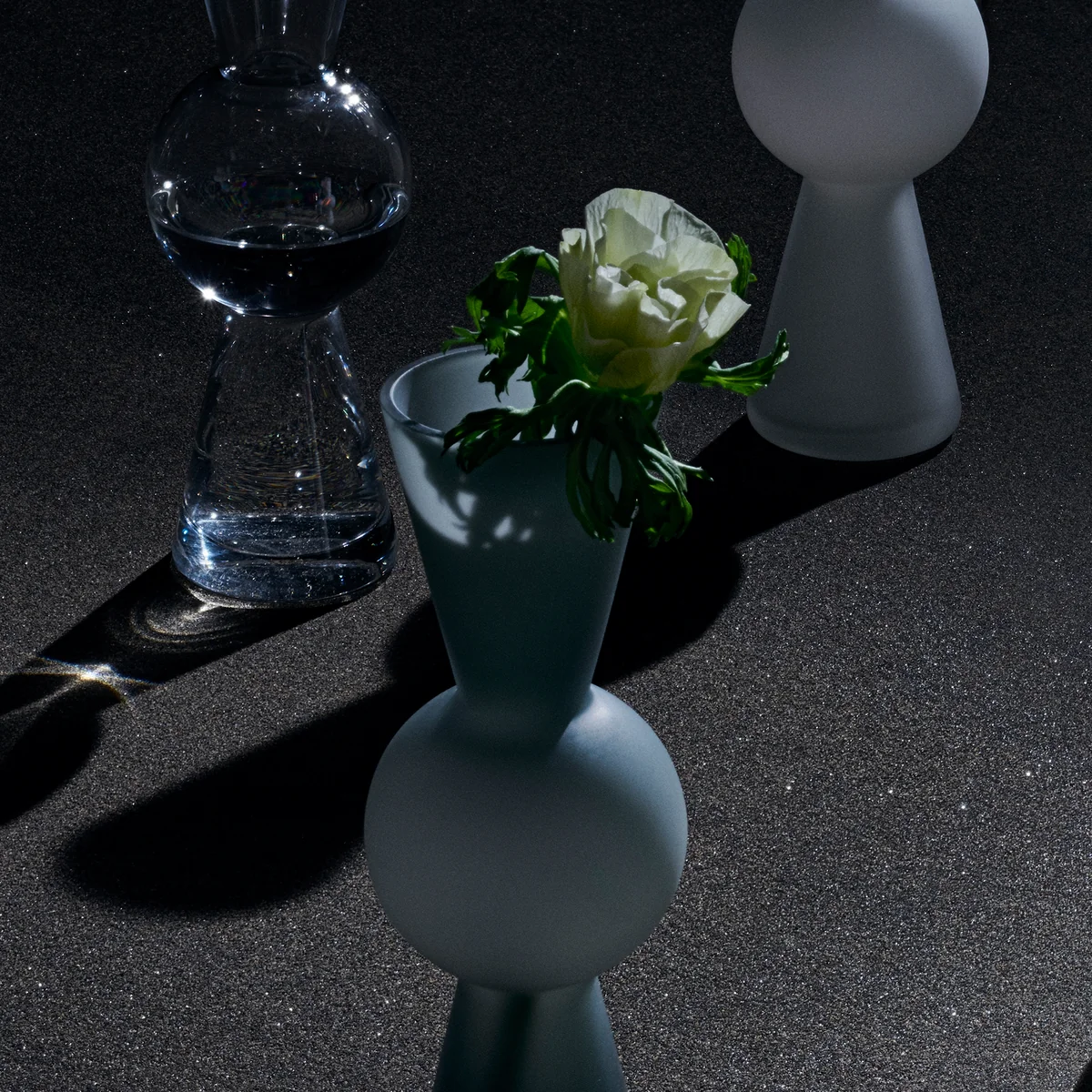 Die Bon Bon Vase ist in verschiedenen Größen erhältlich und kann nach der Nutzung einfach in der Spülmaschine gereinigt werden.