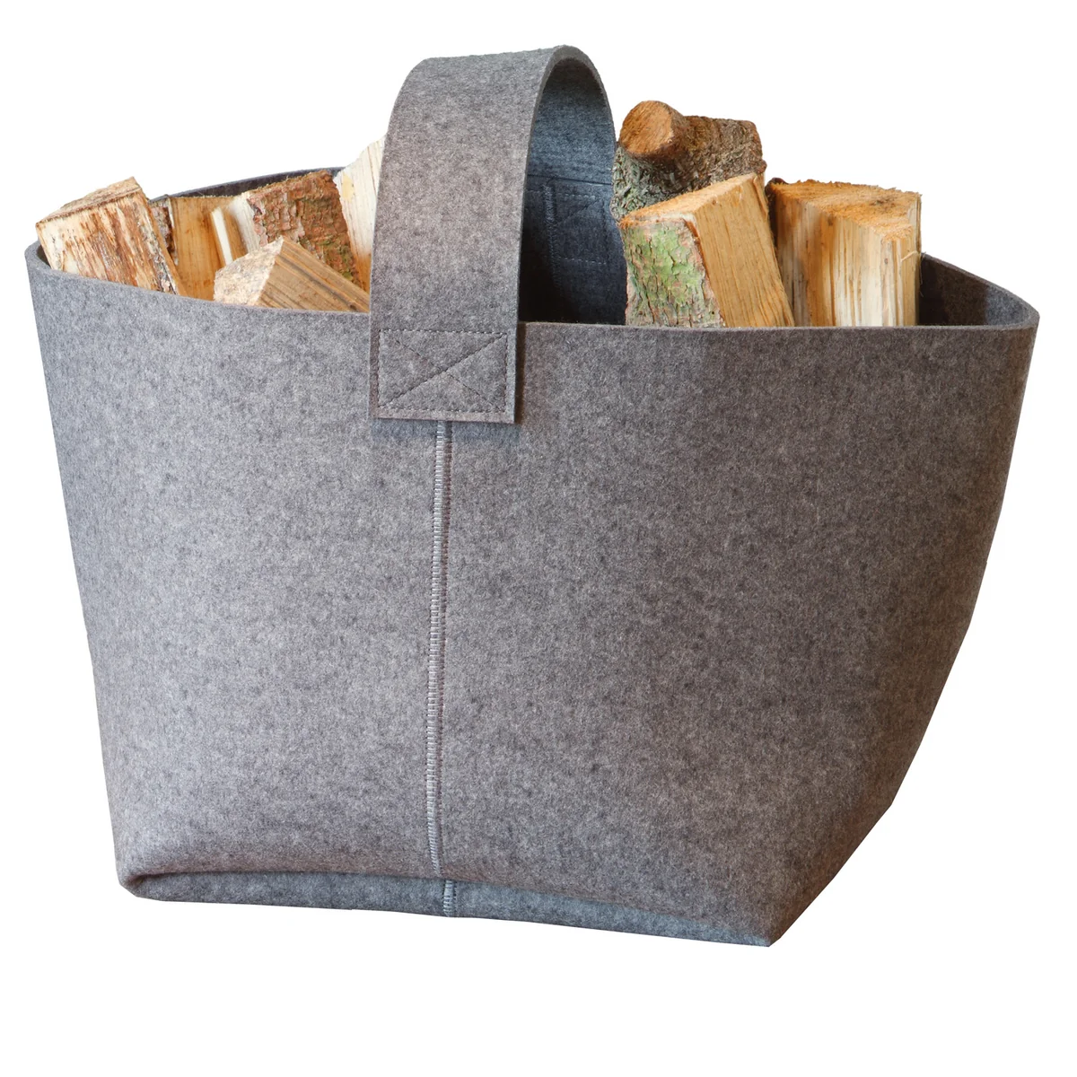 Der Kaminholzkorb von Hey Sign ist ein innovativer Korb aus Filz. Mancher würde den Korb wohl eher als Tasche bezeichnen, denn er besitzt keine massiven Außenwände oder Stützen, sondern besteht einzig und allein aus Filz.