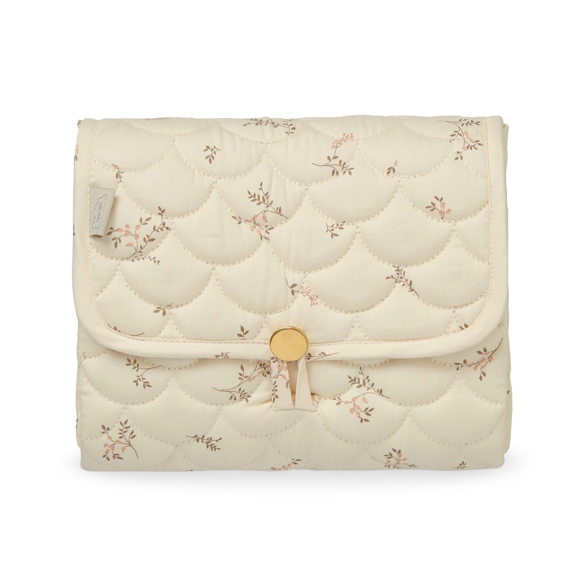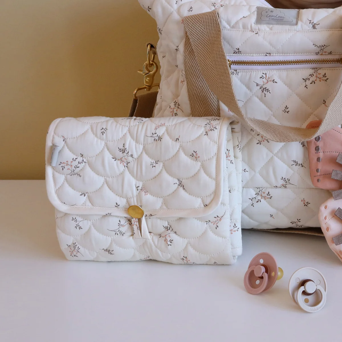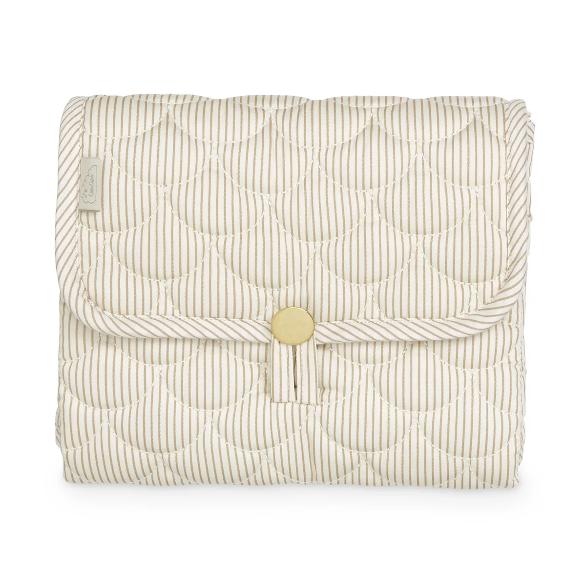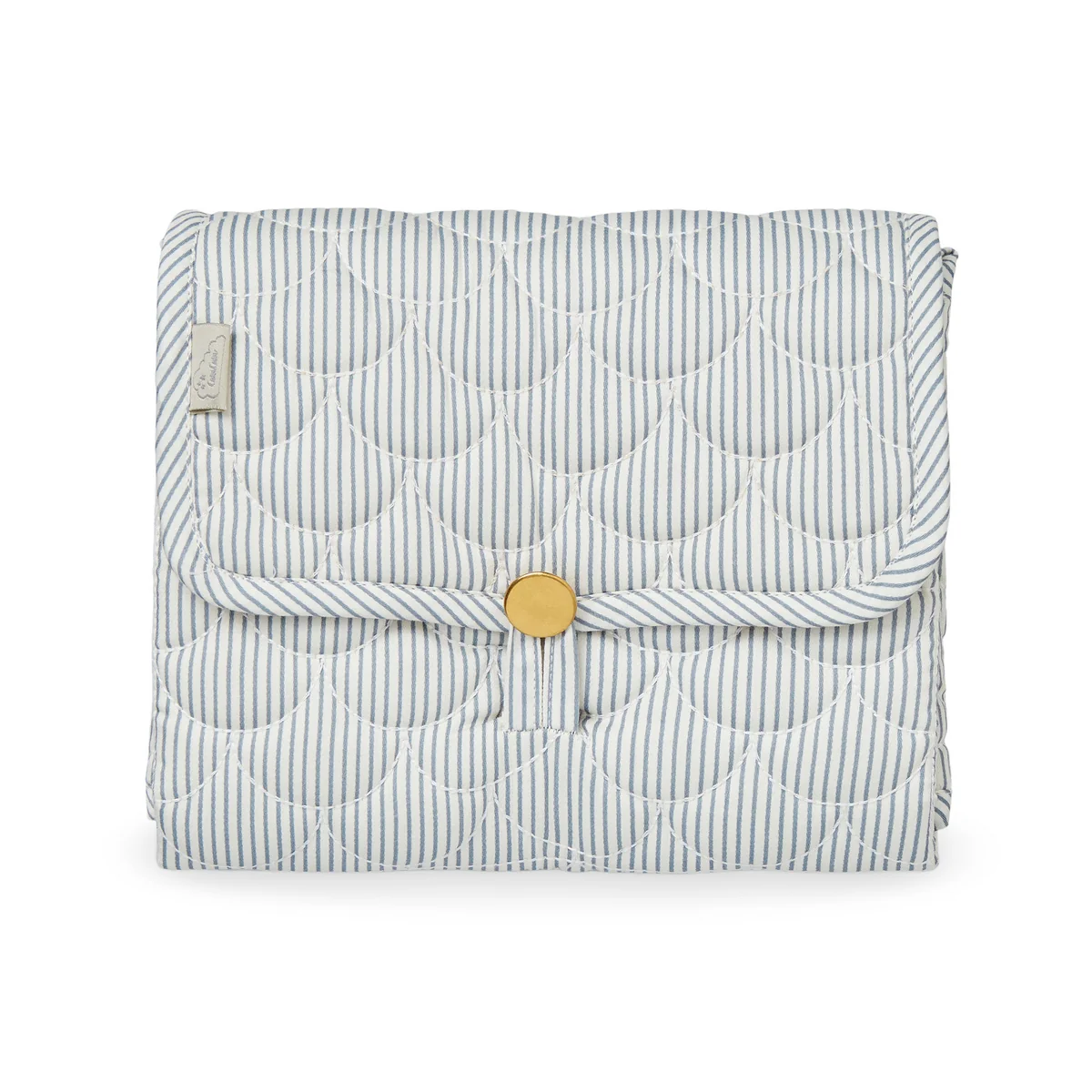 Die Gesteppte Wickelauflage von Cam Cam Copenhagen begeistert mit ihrer schönen, gesteppten Wellenoptik und ihrer hohen Funktionalität. Sie eignet sich ideal für allerlei Wickelsituationen unterwegs und lässt sich ganz simpel mit lediglich einer Hand falten, so passt sie optimal in jede Wickeltasche. Die kleine, integrierte Tasche bietet Platz für Windeln oder Mulltücher. Besonders praktisch: Die Oberfläche der Unterlage ist schmutz- und wasserabweisend. Dank ihrer Wattierung liegen Kleinkinder bequem und komfortabel. Das Außenmaterial der Gesteppten Wickelauflage wird aus Bio-Baumwolle gefertigt, während das Futter aus Polyurethanschaumstoff besteht.