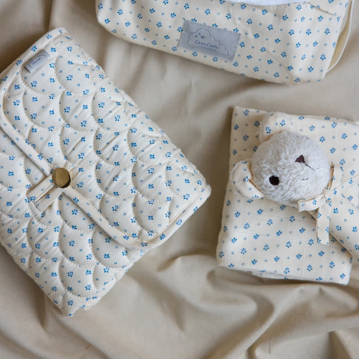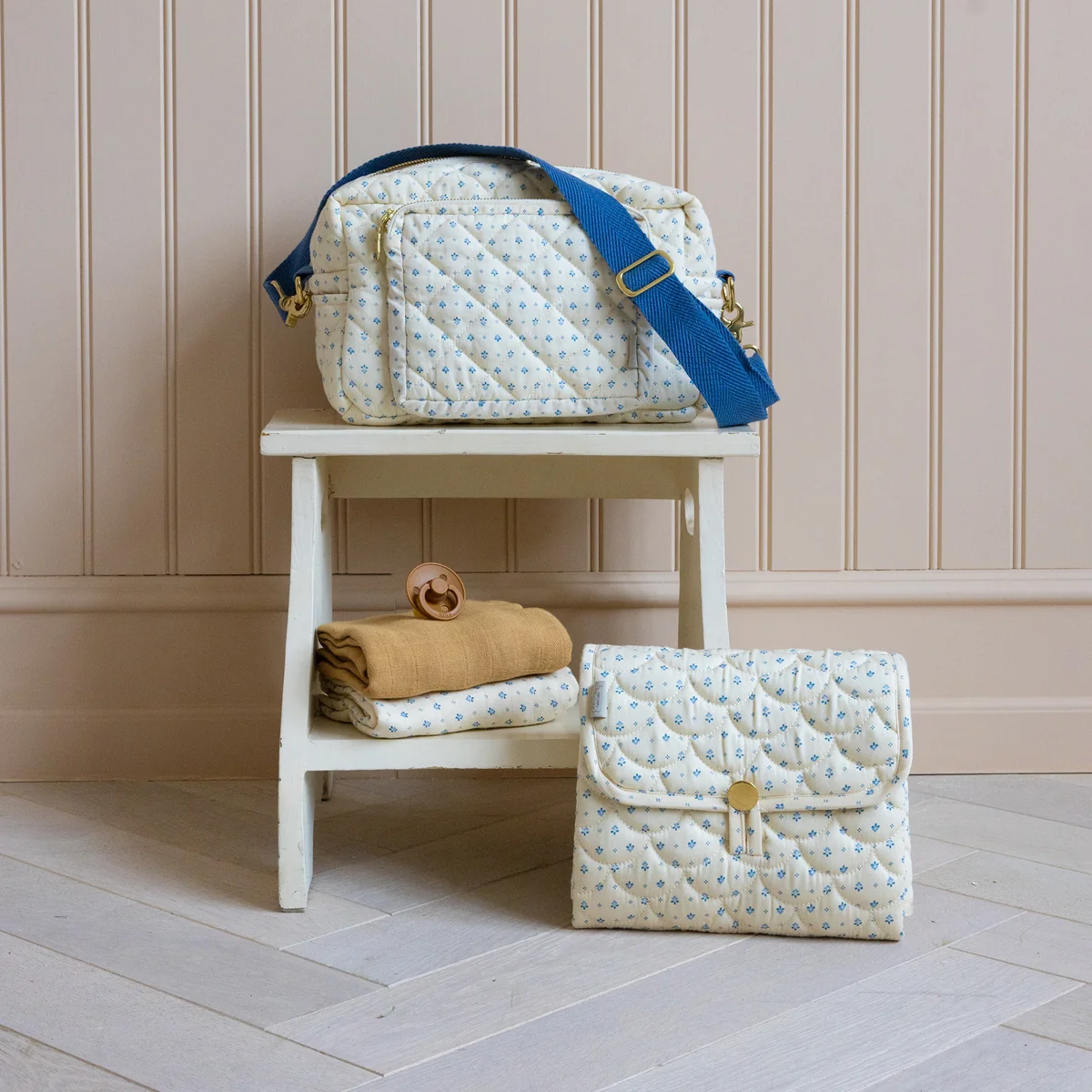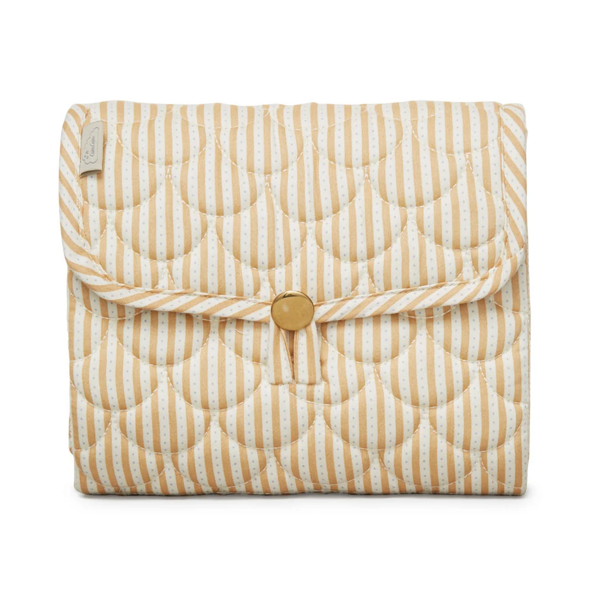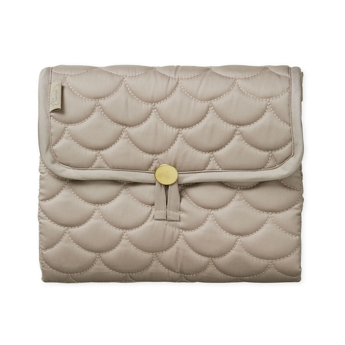 Die Gesteppte Wickelauflage von Cam Cam Copenhagen begeistert mit ihrer schönen, gesteppten Wellenoptik und ihrer hohen Funktionalität. Sie eignet sich ideal für allerlei Wickelsituationen unterwegs und lässt sich ganz simpel mit lediglich einer Hand falten, so passt sie optimal in jede Wickeltasche. Die kleine, integrierte Tasche bietet Platz für Windeln oder Mulltücher. Besonders praktisch: Die Oberfläche der Unterlage ist schmutz- und wasserabweisend. Dank ihrer Wattierung liegen Kleinkinder bequem und komfortabel. Das Außenmaterial der Gesteppten Wickelauflage wird aus Bio-Baumwolle gefertigt, während das Futter aus Polyurethanschaumstoff besteht.
