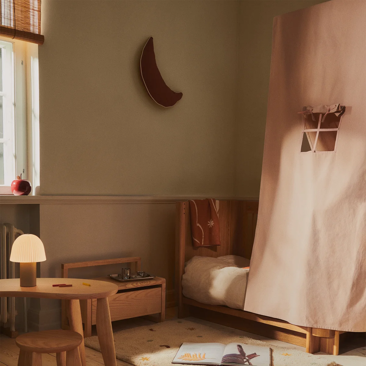Mit der Settle Kinder Baldachin des dänischen Labels Ferm Living haben die kleinen Lieblinge einen ganz privaten Rückzugsort. Sie können sich mit ihren Lieblingsbüchern und -spielzeugen ganz gemütlich verstecken. Settle wird aus ungefärbter Bio-Baumwolle gefertigt und kann ganz simpel an der vorhandenen Holzstange mit Stoffschnur an der Decke befestigt werden. Zwei kleine Fenster und aufrollbare Vorhänge sorgen dafür, dass die Kleinen nach Lust und Laune aus ihrem Versteck rausschauen können. Bei Bedarf bei 30°C Schonwaschgang reinigen.