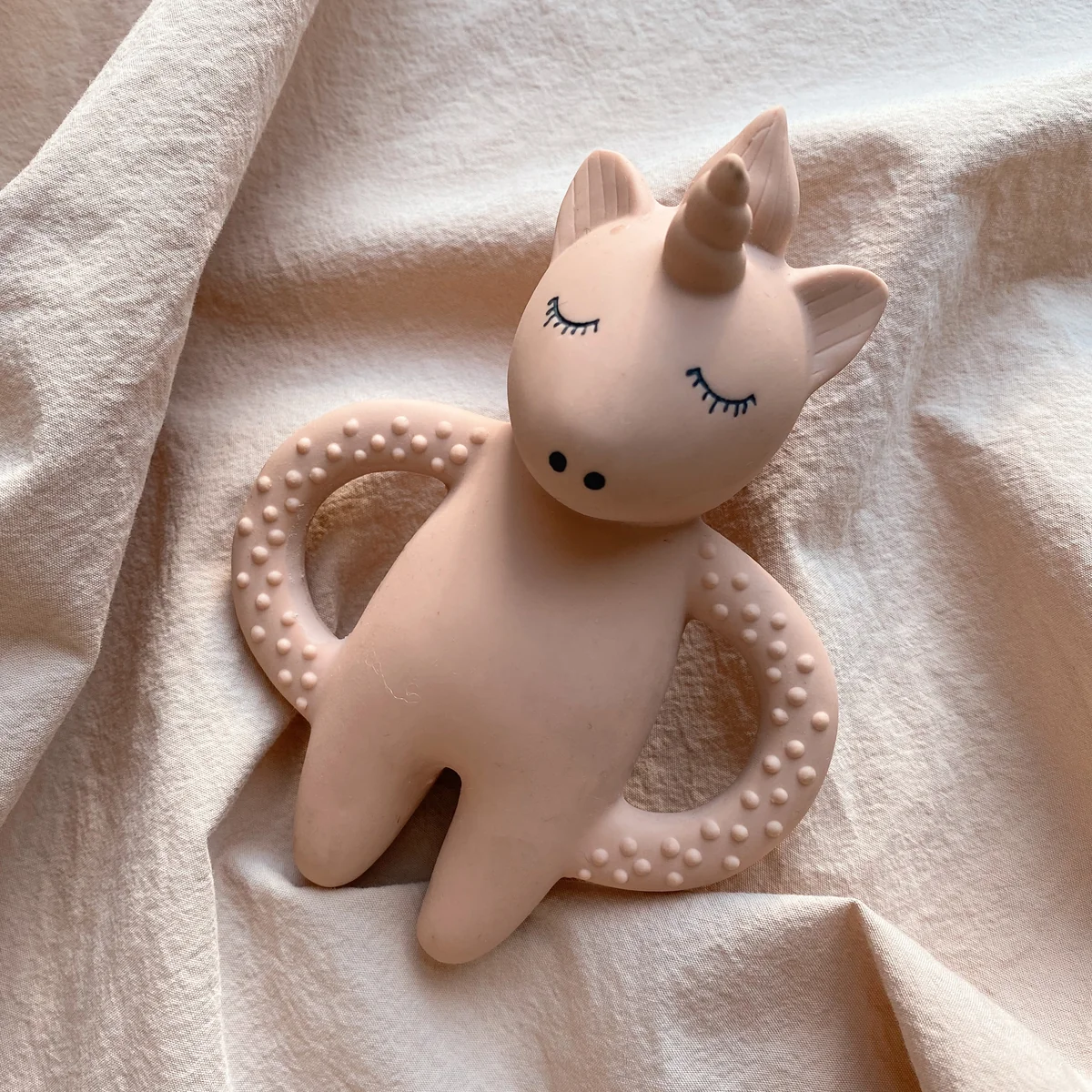 Der Beißring von Konges Sløjd ist ein praktisches und zugleich stilvolles Accessoire für Babys während der Zahnungsphase. Mit seinem durchdachten Design und hochwertigen Materialien bietet er Linderung für das empfindliche Zahnfleisch und fördert die motorische Entwicklung des Babys.