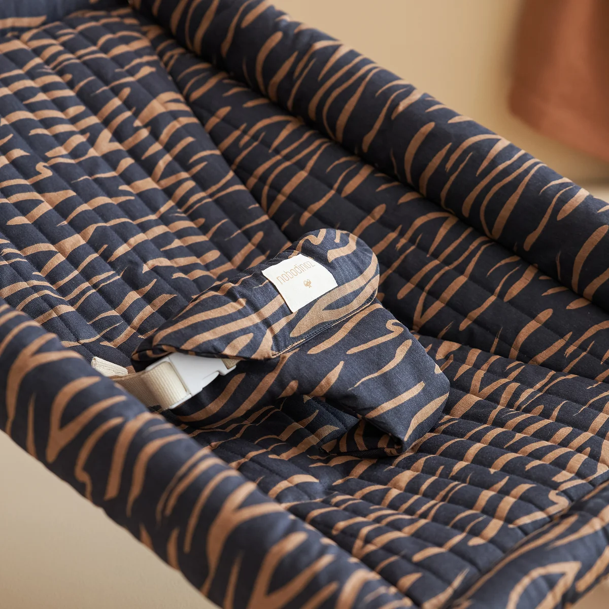Hergestellt wird die Growing Green Babywippe von Nobodinoz aus massivem Buchenholz. Der Bezug aus organischer Baumwolle ist per Reißverschluss abnehmbar und lässt sich mit der Hand reinigen.
