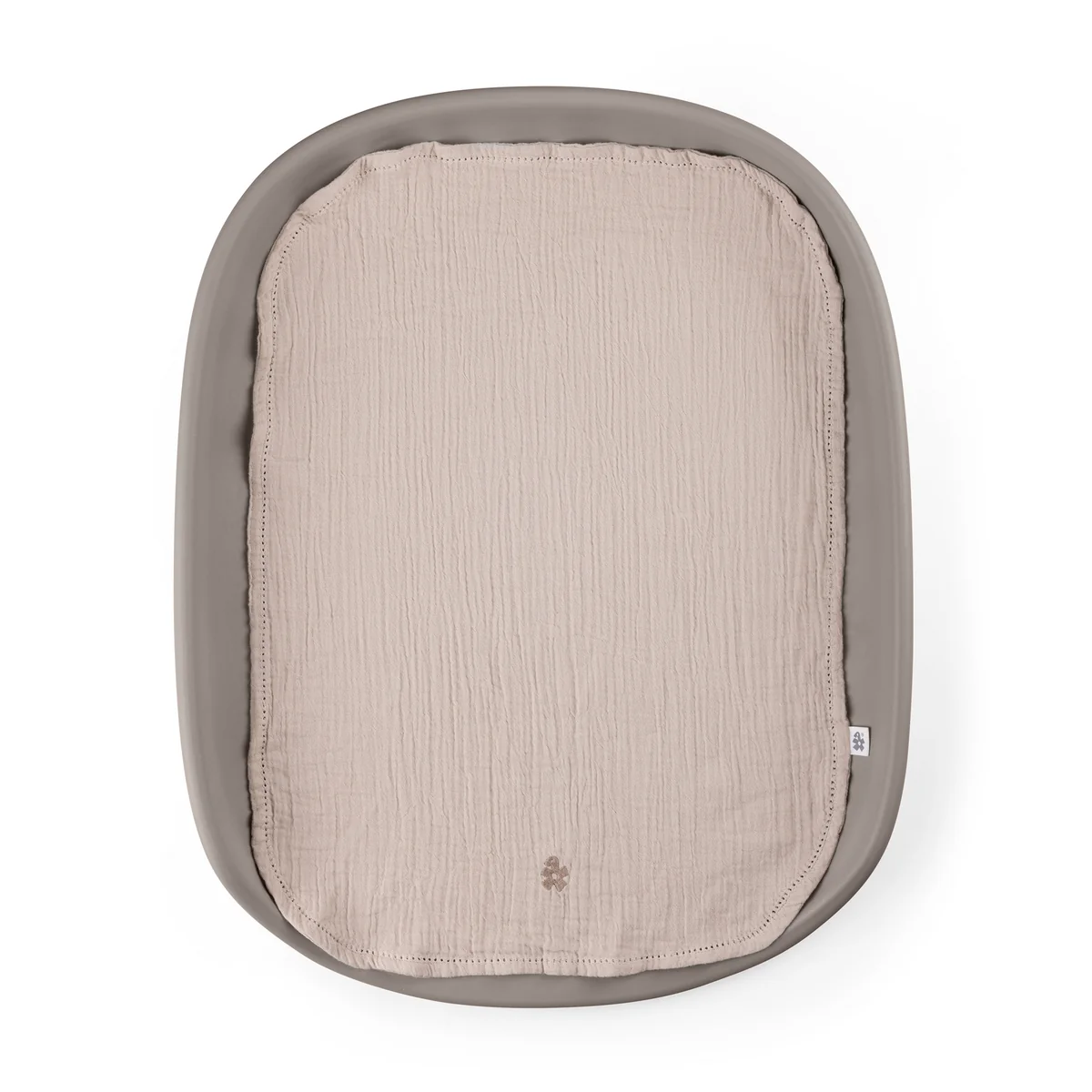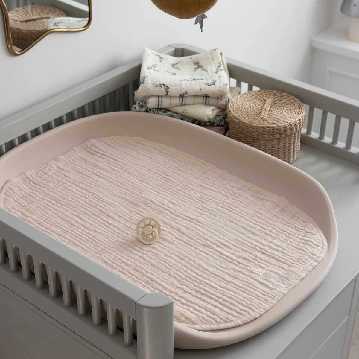 Die weiche Textur des Musselin-Stoffes schenkt dem Baby eine gemütliche und behagliche Oberfläche während des Windelwechsels. Die großzügige Größe der Wickelunterlage bietet genügend Platz und Komfort, um eine angenehme Wickelumgebung zu schaffen.