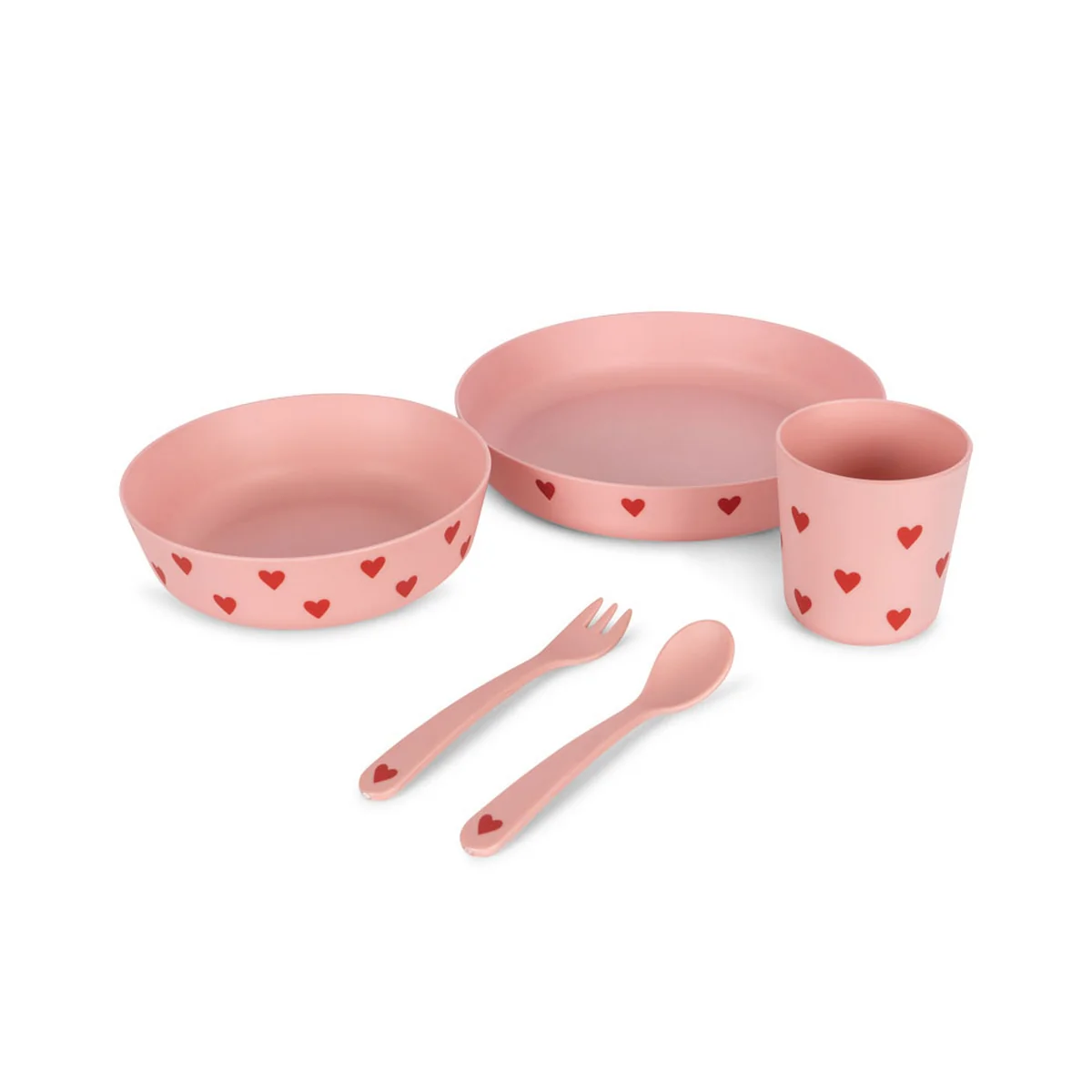 Mit diesem bezauberndem PLA Geschirrset von Konges Sløjd werden Mahlzeiten zu etwas Besonderem gemacht. Das Set eignet sich perfekt für kleine Kinder, die lernen, selbständig zu essen. Das Set besteht aus einem Teller, einer Schüssel, einer Tasse und Besteck mit Löffel und Gabel, die alle aus umweltfreundlichem 100 % Polyactid (PLA) hergestellt sind. Das Set ist spülmaschinenfest, sollte aber nicht über 70 °C erhitzt werden. Es ist nicht für die Mikrowelle geeignet.