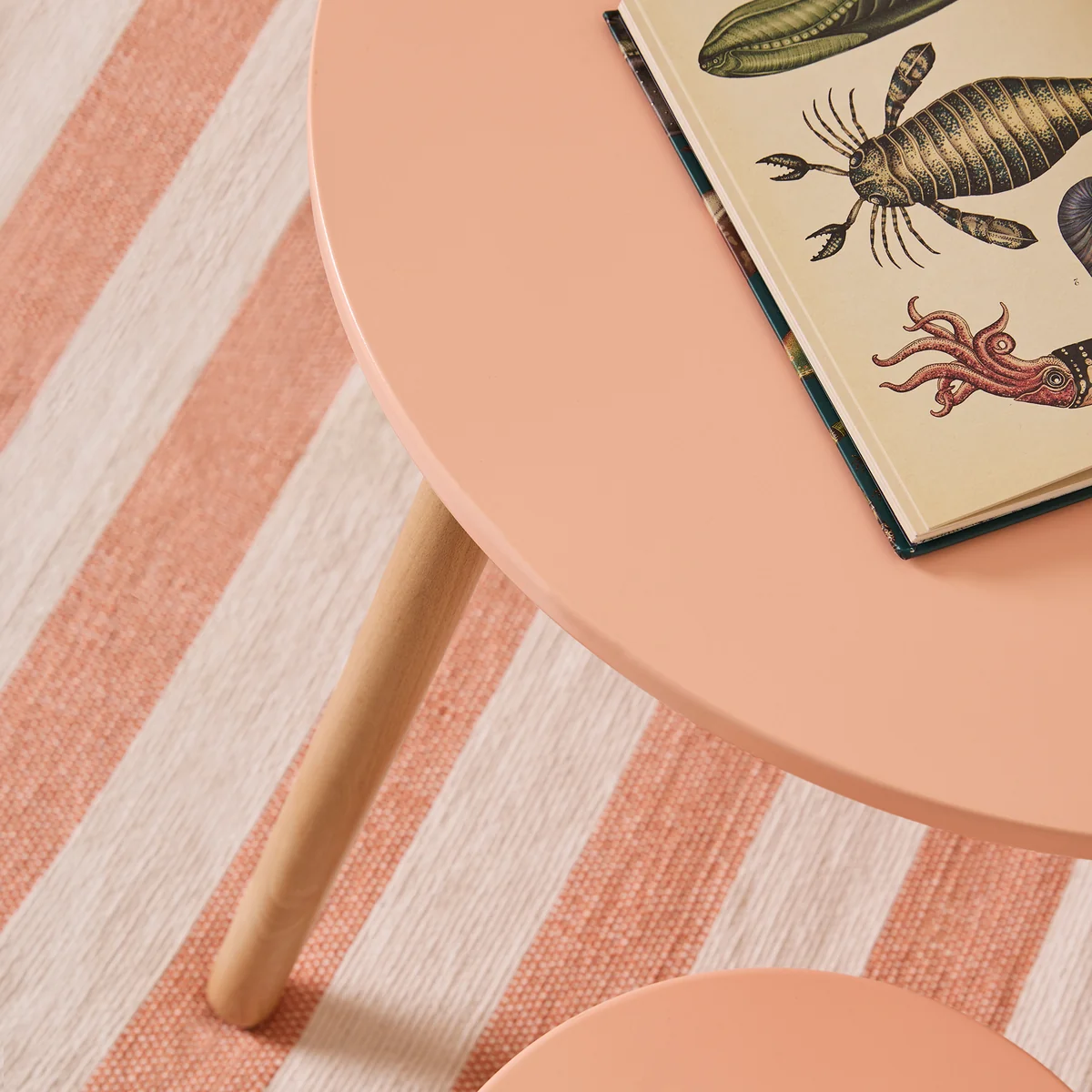 Die passenden Hocker bieten nicht nur bequeme Sitzgelegenheiten, sondern auch zusätzlichen Stauraum unter dem Sitz - ideal für Spielzeug, Bücher oder Kunstmaterialien. So bleibt das Kinderzimmer ordentlich und aufgeräumt, während die Kinder sich in ihrer eigenen kleinen Welt verlieren.