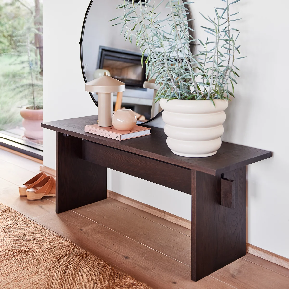 Die Kotai Bank von OYOY ist eine wunderschöne Bank aus Eichenholz, die mit ihrer klaren Formensprache und der hervorragenden, massiv wertigen Qualität begeistert! Mit dieser Bank hält skandinavischer Stil Einzug in Ihr Zuhause. Mit ihrer simplen und klassischen Gestaltung passt sie perfekt in nahezu jedes Wohnambiente. Egal, ob im Flur, dem Wohnzimmer, dem Esszimmer oder dem Schlafzimmer- die Kotai Bank macht eine perfekte Figur.