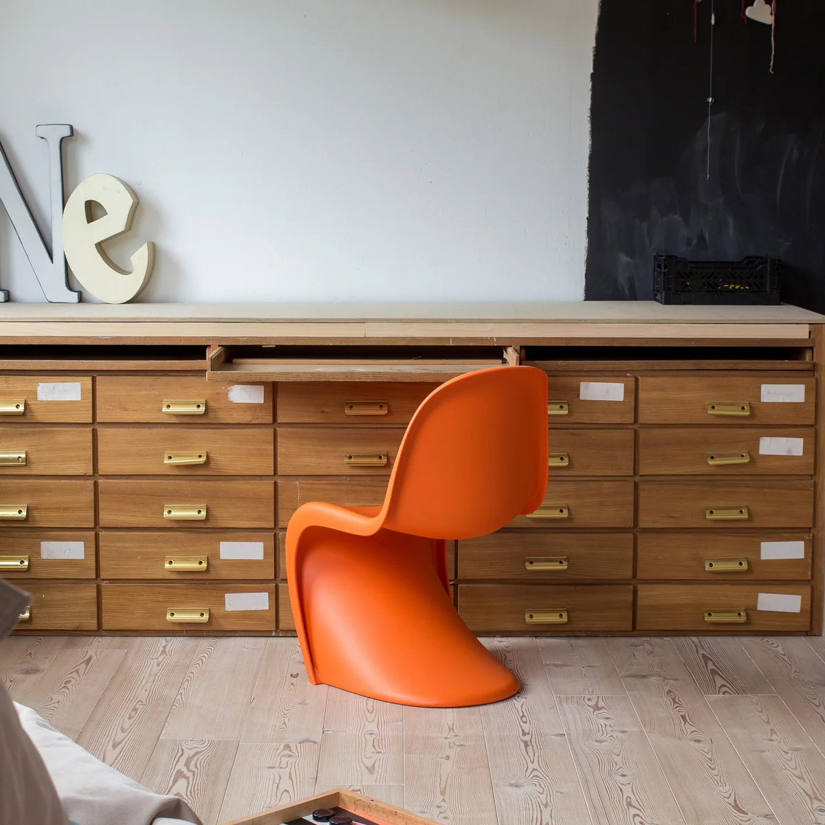 Hinsichtlich des Materials und in seinen Proportionen unverändert, fällt er gegenüber dem regulären Modell um circa ein Viertel kleiner aus. Das macht den Stuhl zu einer idealen Sitzgelegenheit für Kinder im Kindergarten- und Grundschulalter.