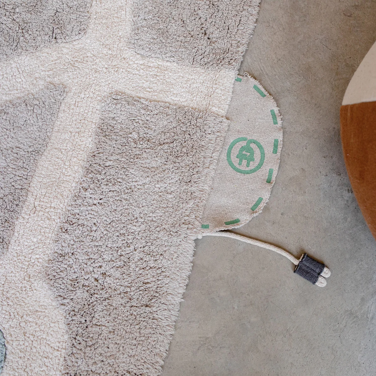 Der Eco-City Spielteppich aus dem Hause Lorena Canals bietet spielerische Lernprozesse in der Eco-City. Die kleinsten Familienmitglieder können ihrer Fantasie freien Lauf lassen und lernen auf lustige Weise das leise Brummen der Elektrofahrzeuge kennen. Der Plüsch-Teppich mit e-Fahrzeugen und Fahrrädern kann wunderbar im gesamten Haus platziert und transportiert werden. Eco-City wird aus einer Baumwoll-Basis mit recycelten Textilfasern gefertigt.