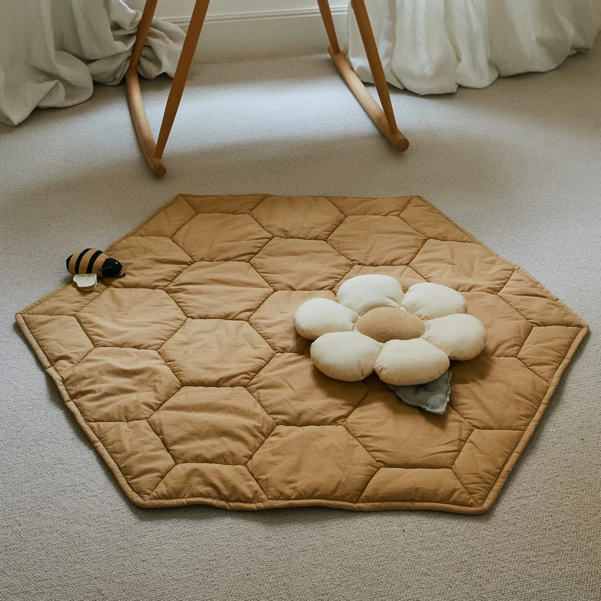 Das Honeycomb-Design, inspiriert von den Waben der Natur, verleiht der Spielmatte eine zeitlose Eleganz. Die sanften Farben und die geometrischen Muster schaffen eine harmonische Umgebung, die die Fantasie der Kinder anregt.