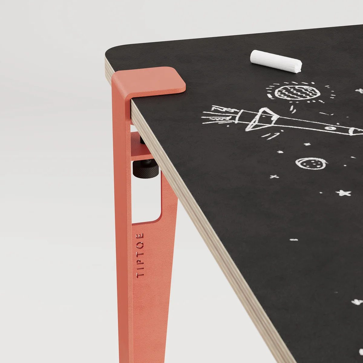 Der Kinderschreibtisch Schiefer Vice Versa des französischen Herstellers TipToe verleiht jedem Kinderzimmer einen kreativen Touch! Der funktionelle und zeitlose Tischplatte wird aus Eco-zertifiziertem Holz mit Schiefern-Beschichtung gefertigt. So können Kinder und Erwachsene mit Kreide malen und schreiben. Die Tischbeine und Stützen werden aus recycelbarem Stahl hergestellt. Der Tisch eignet sich ideal für Kinder im Alter von 3 bis 6 Jahren.