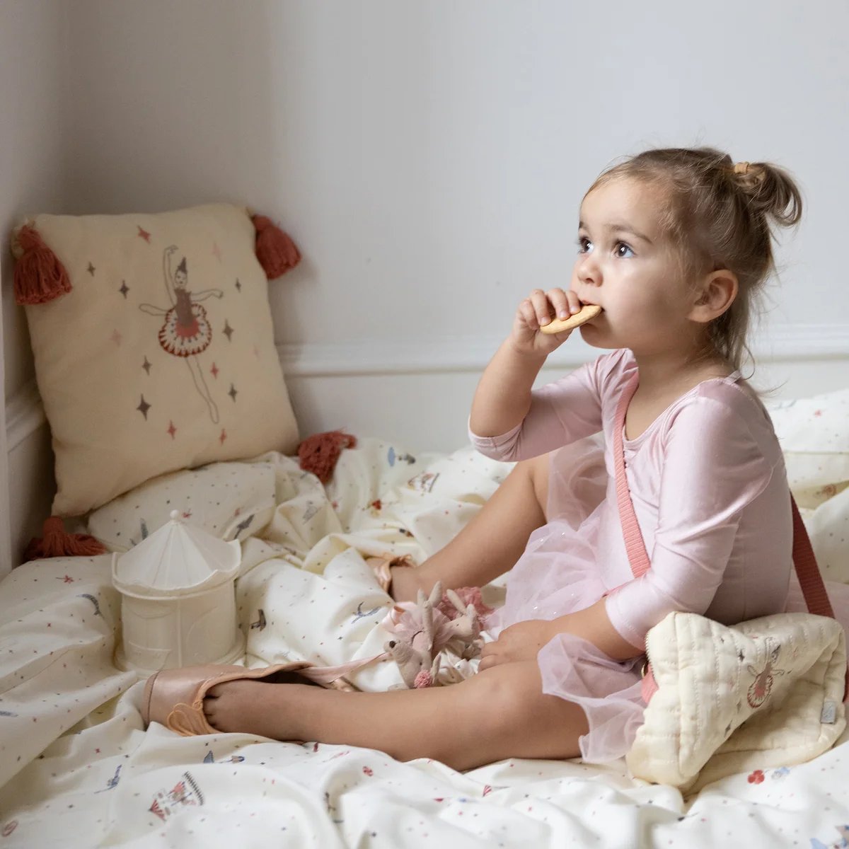 Ob als Kuschelkissen, dekoratives Element oder liebevolles Geschenk – das bestickte Kissen setzt sanfte, elegante Akzente und schafft eine behagliche Atmosphäre, in der Kinder sich rundum wohlfühlen können.