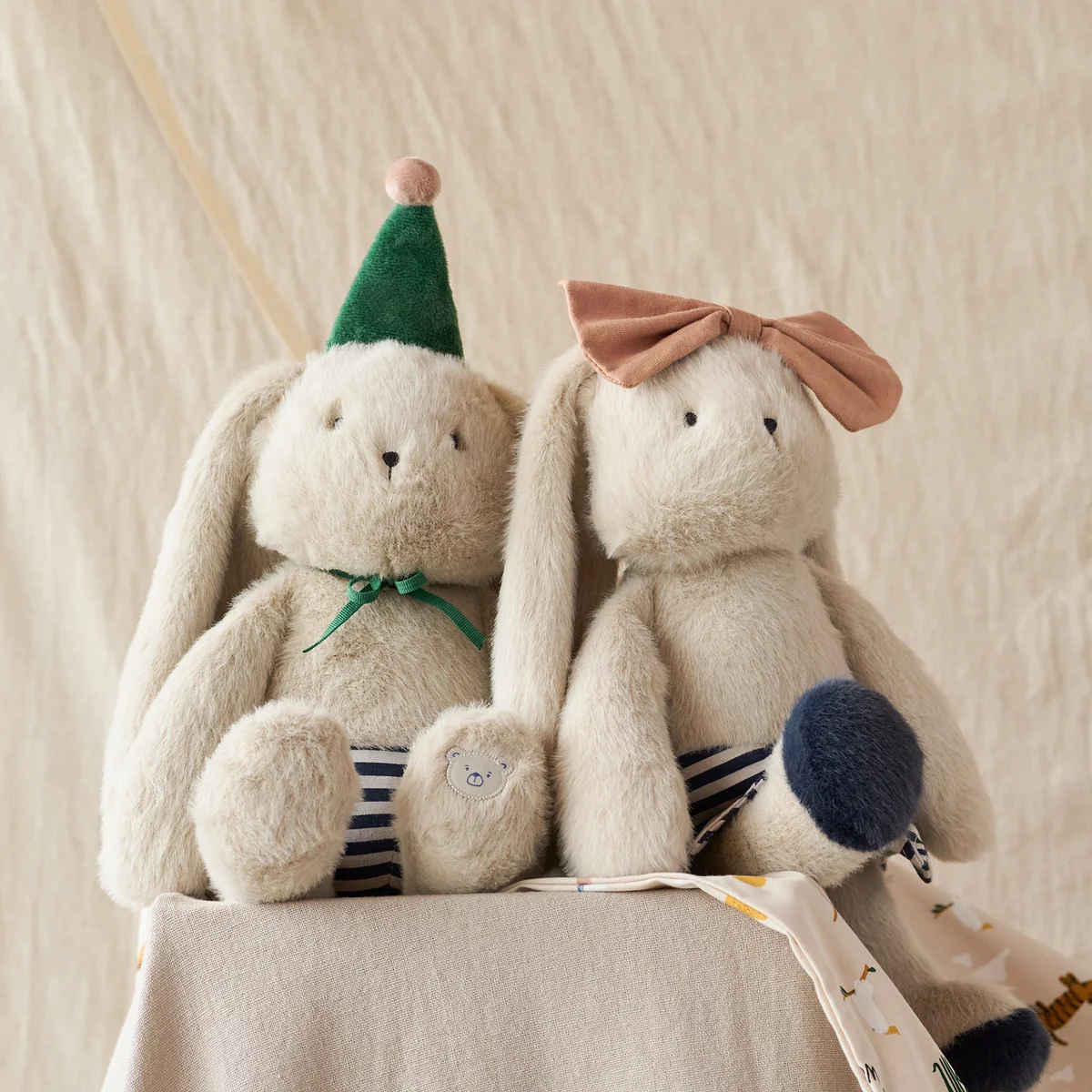 Der Celebration Teddy von LIEWOOD ist ein kuscheliger Begleiter mit festlichem Charme. Gefertigt aus 100 % GRS-zertifiziertem, recyceltem Polyester, fühlt er sich besonders weich an und lädt zum Schmusen und Liebhaben ein. Mit seinem kleinen Partyhut, feinen Stickdetails und der anschmiegsamen Form ist Bertrand sowohl zum Spielen als auch zum Dekorieren ideal – ein Geschenk, das Kinder über Jahre begleitet.