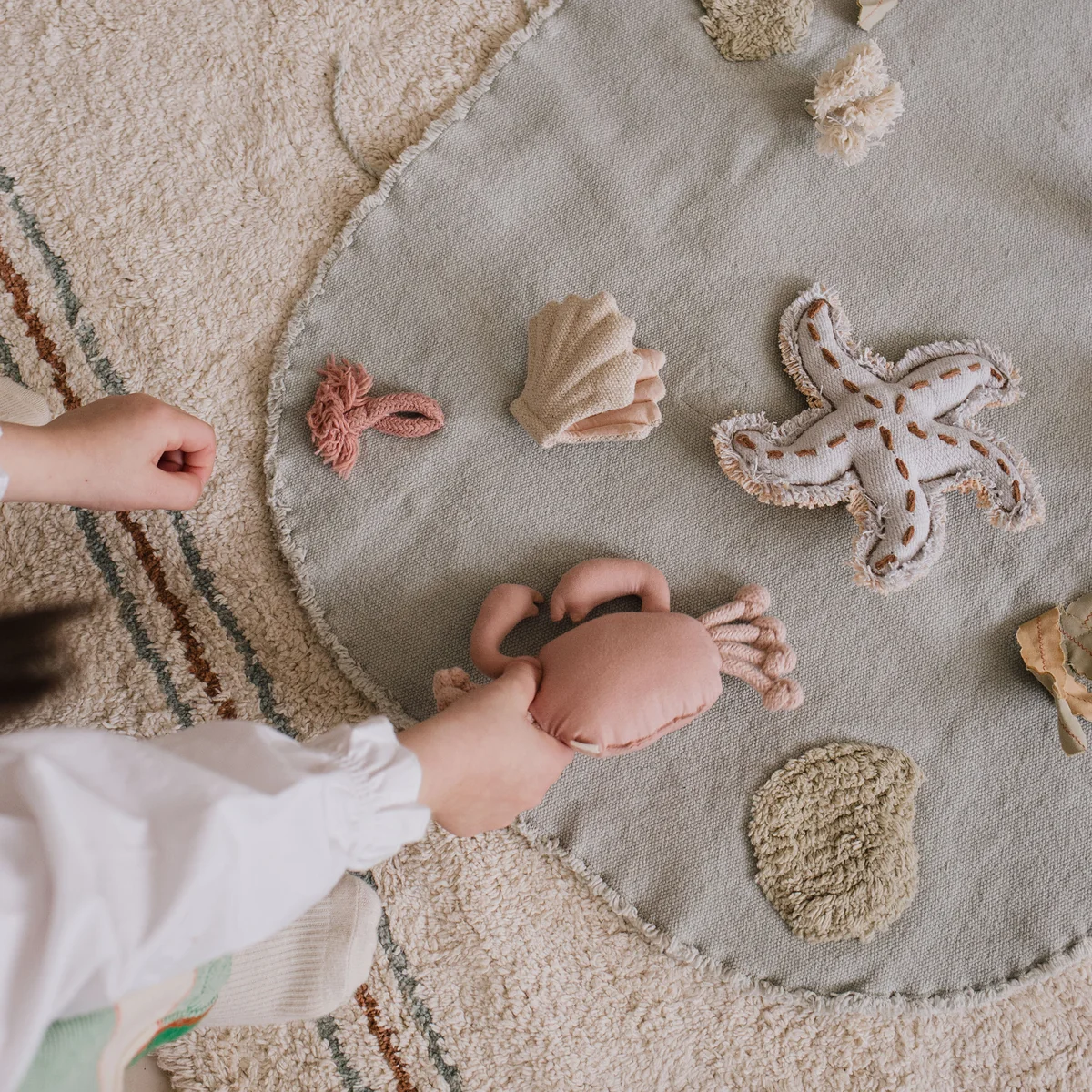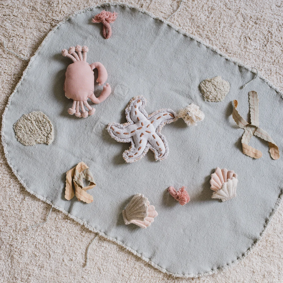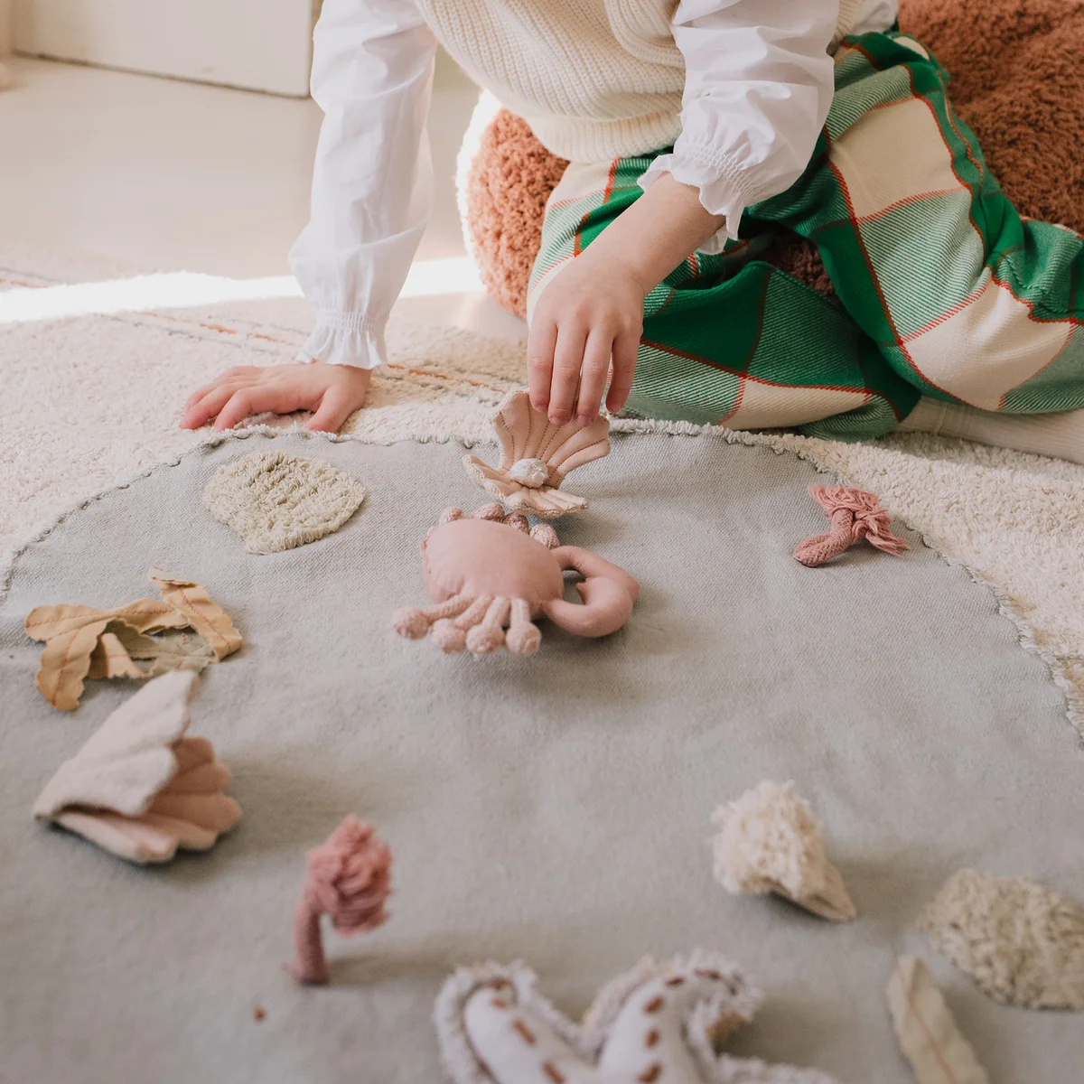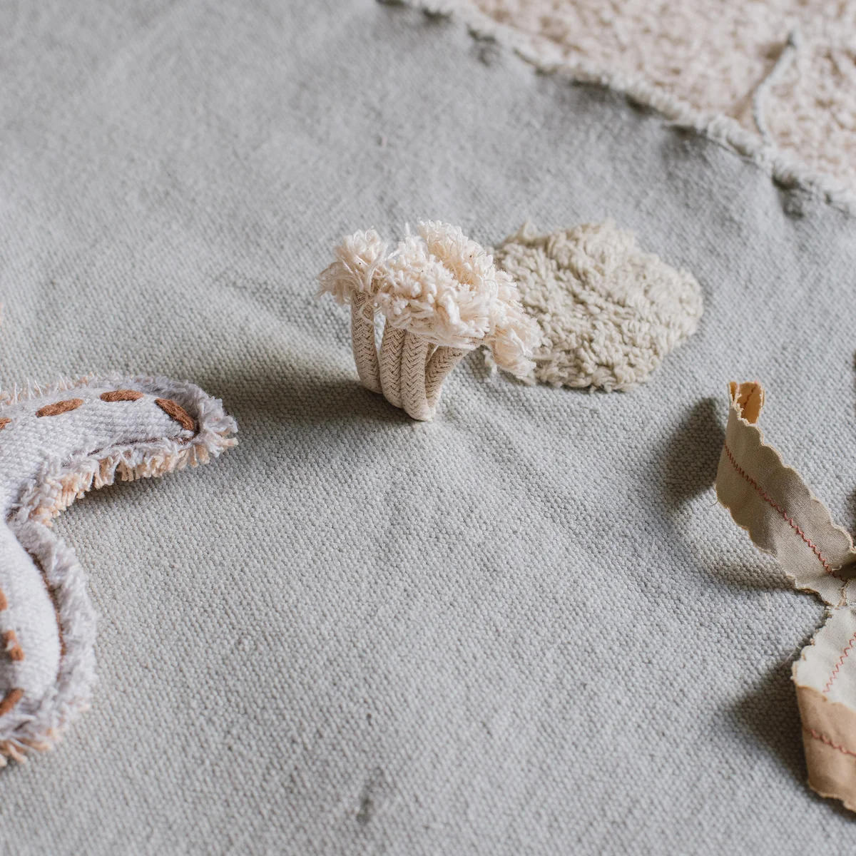 Mit diesem charmanten interaktiven Spiel-Set von Lorena Canals können tolle Abendteuer erlebt werden! Es ist aus Baumwollstoff gefertigt und besteht aus kleinen süßen Spielfiguren in verschiedenen Größen. Die Blumen werden einfach mit den mitgelieferten Kordeln an den Sockel geknüpft.
