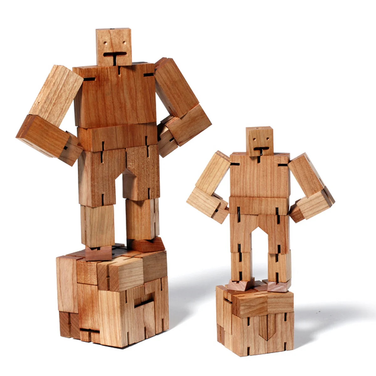 Die Cubebot Familie von areaware ist in verschiedenen Größen erhältlich. Dank der besonderen Gelenkigkeit, kann der Cubebot verschiedene Posen und Körperhaltungen einnehmen. Daumen hoch für so viel Flexibilität.