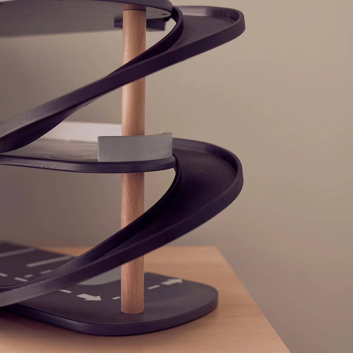 Das Aiden Parkhaus mit Zubehör aus dem schwedischen Hause Kids Concept verfügt über drei Ebenen und bietet alles, was Kinder für aufregende Abenteuer brauchen. Sie können die Rampen hinauf- und hinunterfahren, den Aufzug benutzen, um alle Ebenen zu erreichen, einen Boxenstopp an der Mautstelle einlegen oder sich für einen Hubschrauberflug auf dem Hubschrauberlandeplatz anschnallen. Das Set enthält drei Autos und einen Hubschrauber.