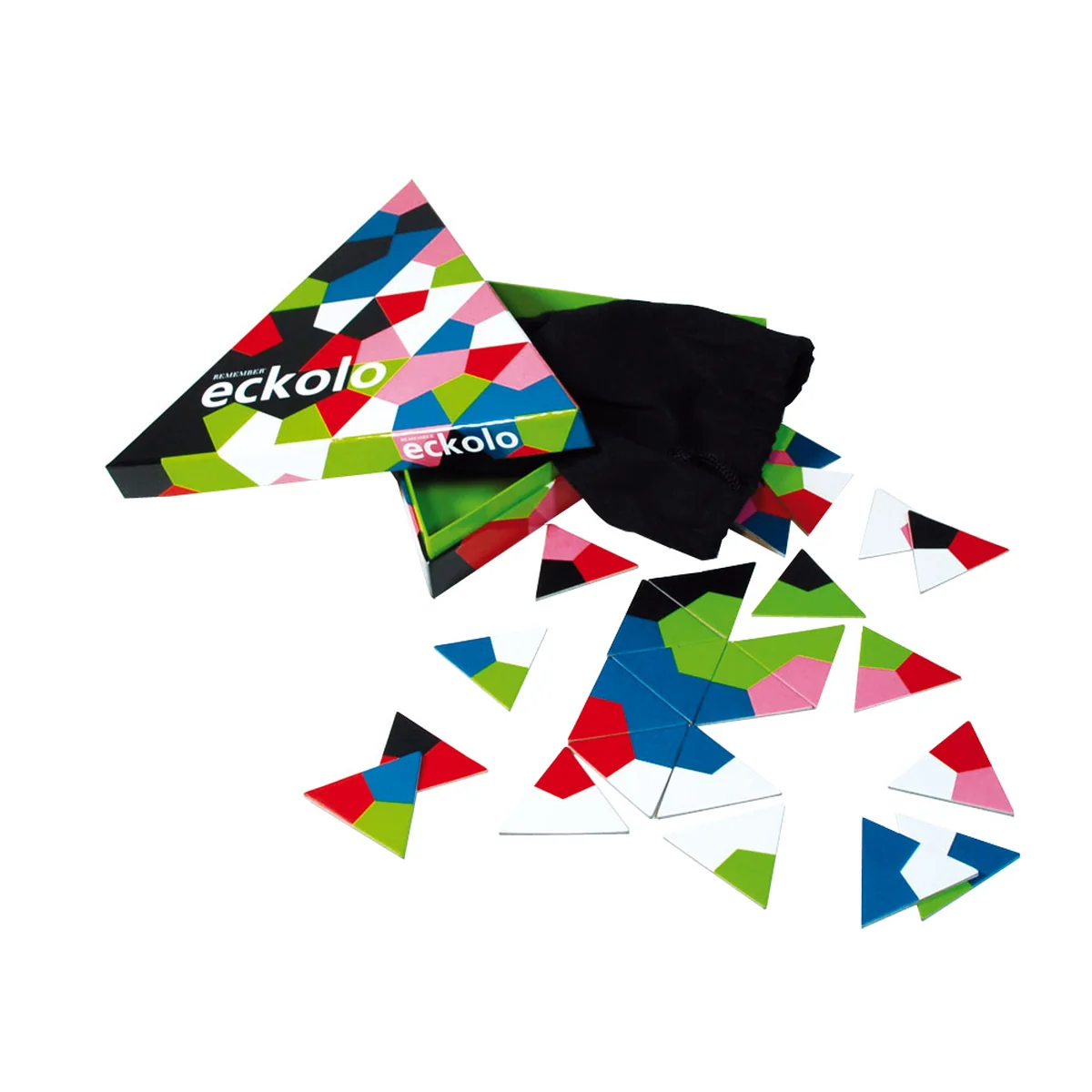 Eckolo ist ein farbenfrohes Anlegespiel für mehrere Personen, Jung und Alt. Neben den einfachen Regeln garantieren auch die immer wieder neu entstehenden Formen und Farbkombinationen, das Design und die Aufmachung des Spiels Spaß ohne Ende.