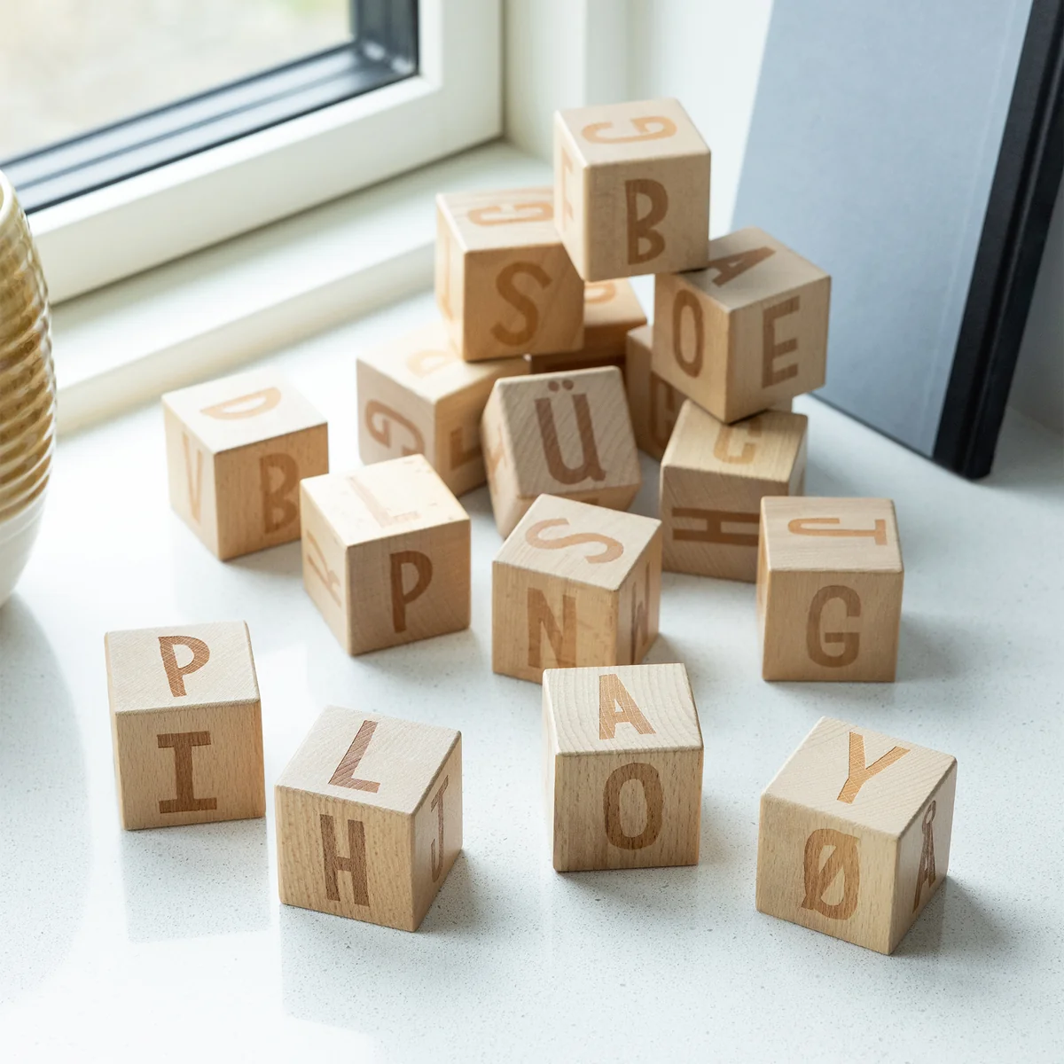 Buchstabenblöcke aus Buchenholz