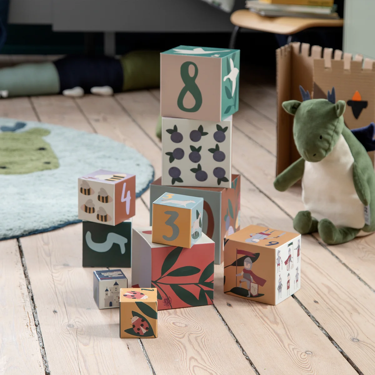 Die Stapelblöcke von Sebra sind schöne und dekorative Spielzeuge im 10er Set. Die Blöcke werden in einer Box geliefert und sind mit den Prints Dragon Tales und Pixie Land verziert. In verschiedenen Größen macht es besonders viel Spaß, mit den Klötzen Türme zu bauen und sie auch wieder umzuwerfen.