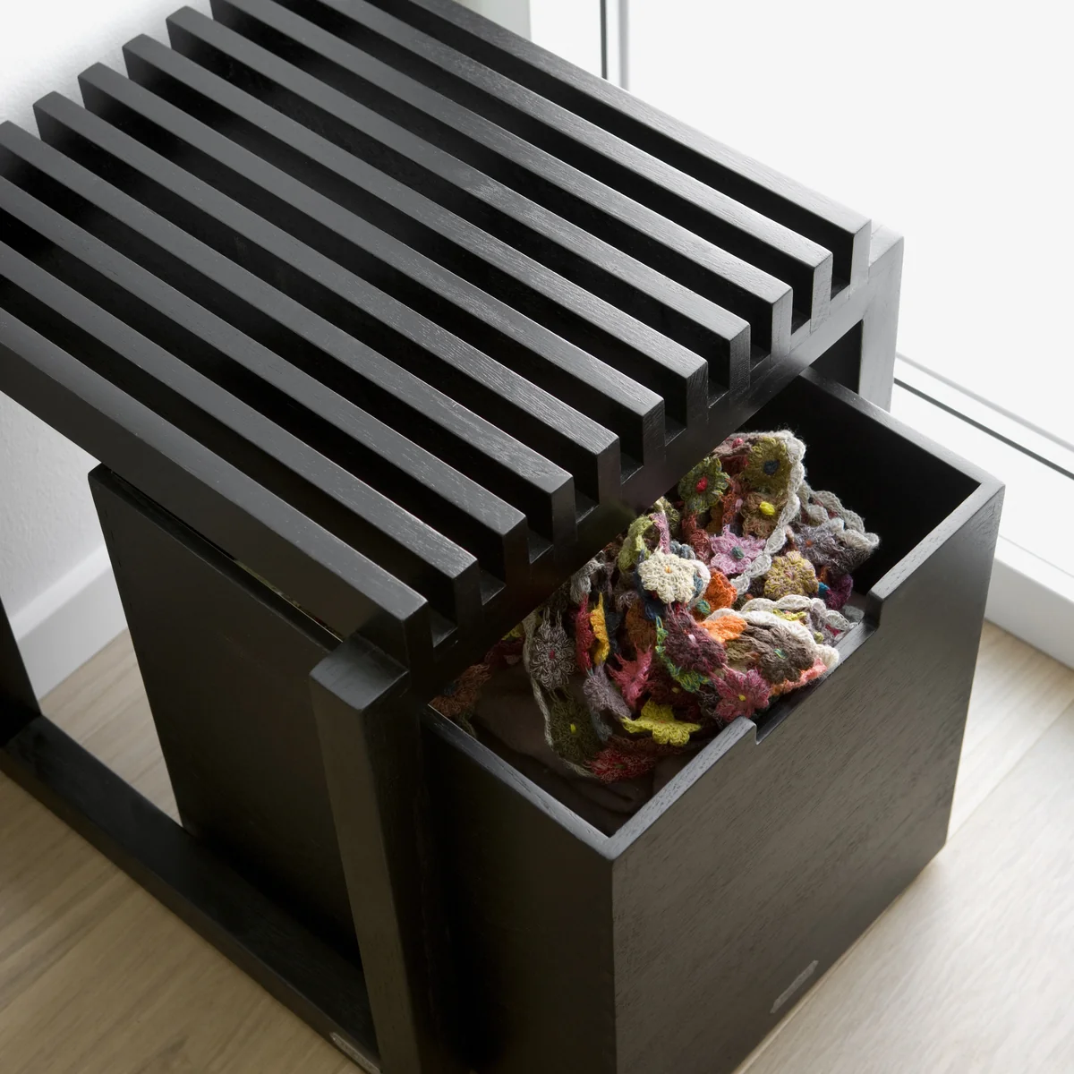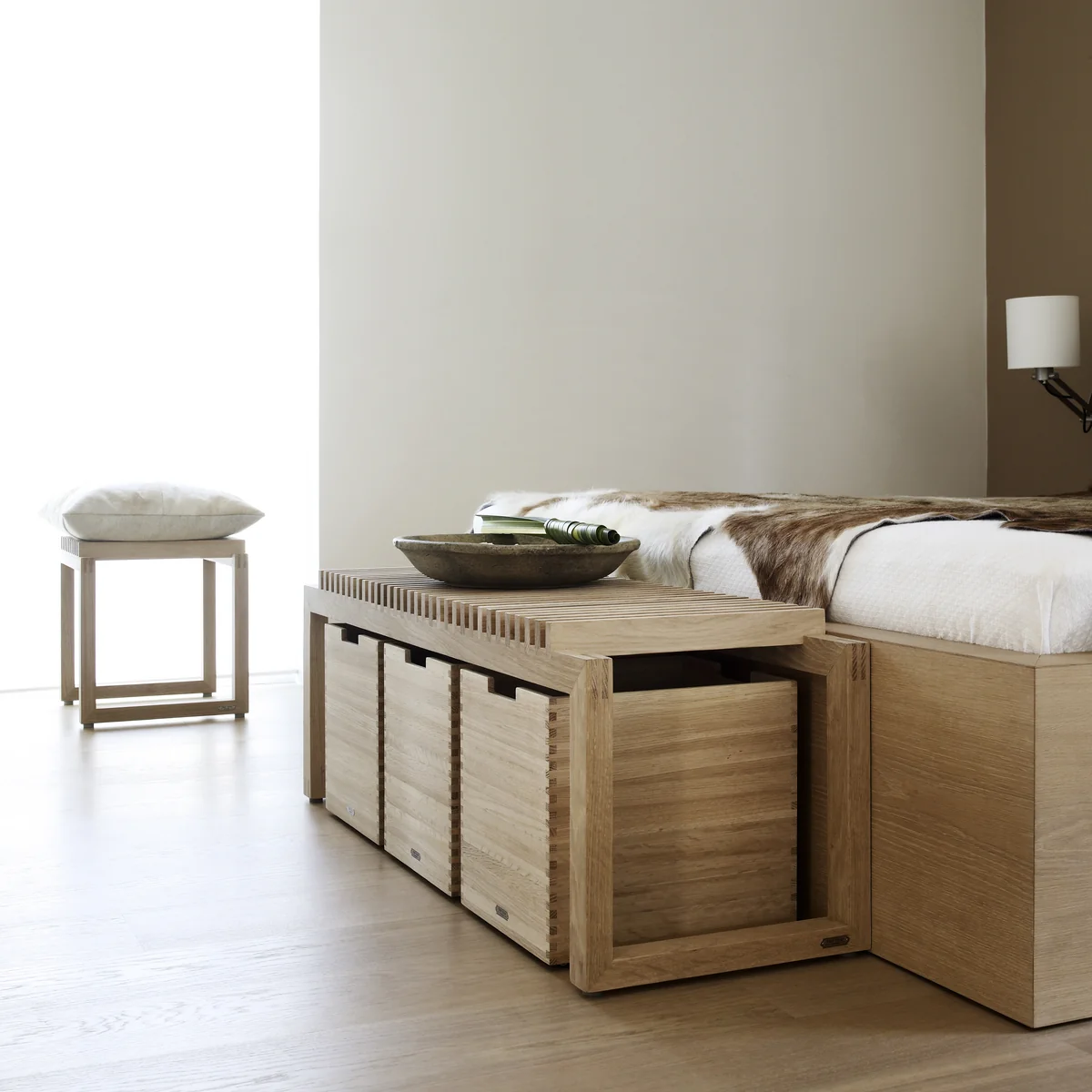 Die kleine Version der Cutter Box besitzt Standfüße, während die große Version mit Rollen ausgestattet ist: Sie sorgen dafür, dass die skandinavische Kiste perfekt geeignet ist, um sie unter der Cutter Bank, dem Cutter Stuhl oder anderen Möbeln zu verstauen und mit einem Handgriff wieder hervorzuholen.