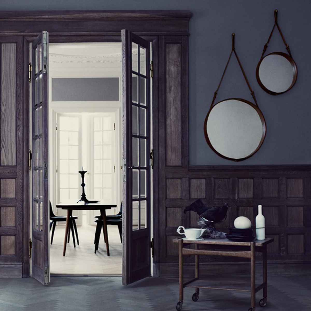 Die Lederriemen des Adnet Spiegels werden in Italien handgefertigt und sind sorgfältig verarbeitet. Die Länge des jeweiligen Lederriemens verhält sich proportional zum Durchmesser des Spiegels, den er umgibt. Somit repräsentiert der Adnet Spiegel einen persönlichen, individuellen Stil, der sich unbeeindruckt von kurzlebigen Trends zeigt.