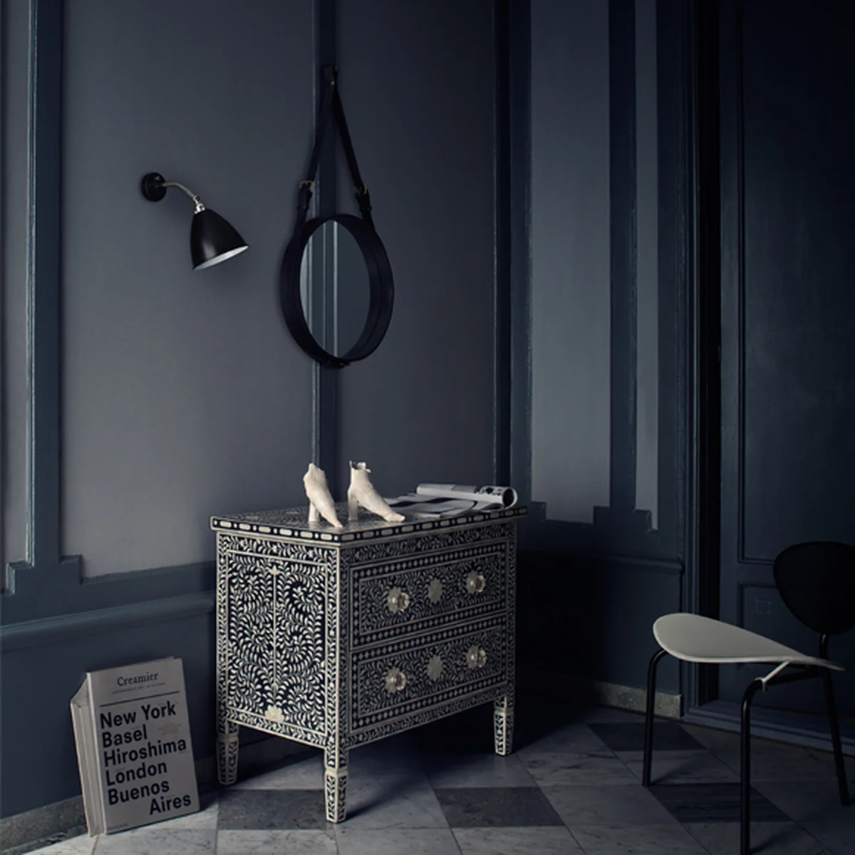 Schlicht und dennoch üppig, dezent und trotzdem luxoriös: Der Adnet Spiegel ist der Inbegriff des typischen Stils von Jacques Adnet. Der französische Designer hat in den fünfziger Jahren des vergangenen Jahrhunderts verschiedene Stilrichtungen kombiniert und so Unverwechselbares geschaffen. Die schlichte Geometrie stellt den Gegenpol zur detaillierten, fast barock wirkenden Lederüberspannung des runden Adnet Spiegels dar, sodass er durch diesen Kontrast sowohl in moderne als auch in klassische Wohnungen passt.