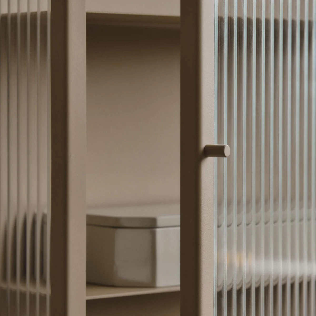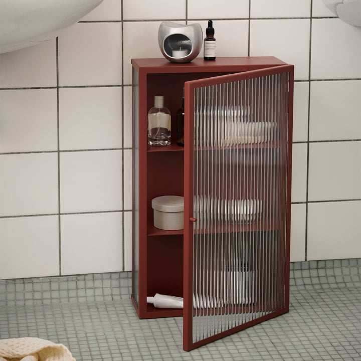 Der Haze Wandschrank von Says Who wird aus einem Gestell aus pulverbeschichtetem Stahl und Drahtglas hergestellt und bringt eine völlig neue Formsprache in das Sortiment von Ferm Living.