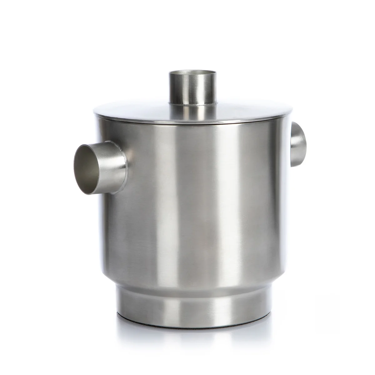 Der Behälter wurde von Sascha Sartory entworfen und und zeichnet sich durch sein schlichtes Design aus. Aus Edelstahl in verschiedenen matten Farben gefertigt, wird er zu einem tollen Blickfang an der Bar.