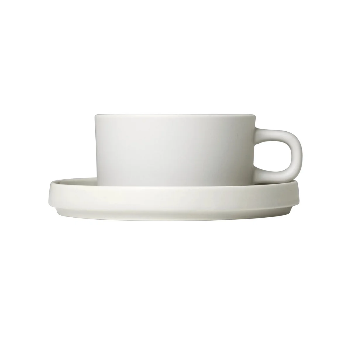 Die Blomus Pilar Teetasse mit Untertasse ist eine elegante Ergänzung für die Teestunden und bietet eine stilvolle Möglichkeit, den Tee zu genießen. Mit ihrem modernen Design und hochwertigen Materialien verleiht dieses Set jedem Teetrinken eine zeitlose Eleganz. Das Pilar Teetassen-Set eignet sich für verschiedene Teesorten, sei es Schwarztee, Grüntee, Kräutertee oder Früchtetee. Es kann sowohl im täglichen Gebrauch als auch bei besonderen Teekränzchen verwendet werden. Das Set fügt sich nahtlos in verschiedene Einrichtungsstile ein.