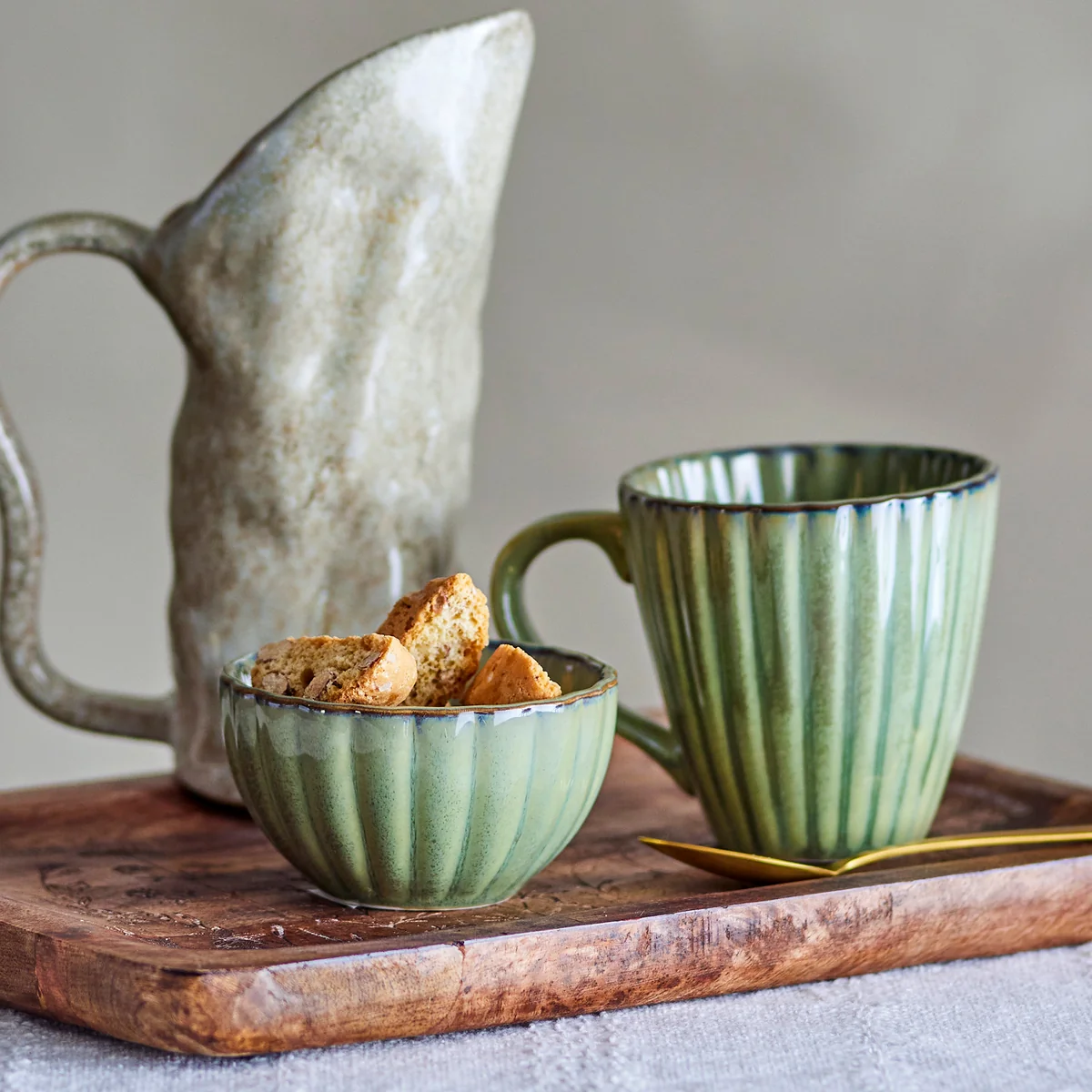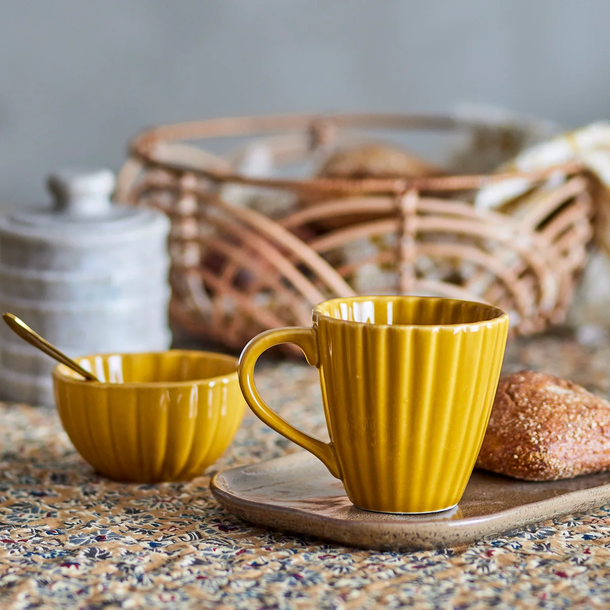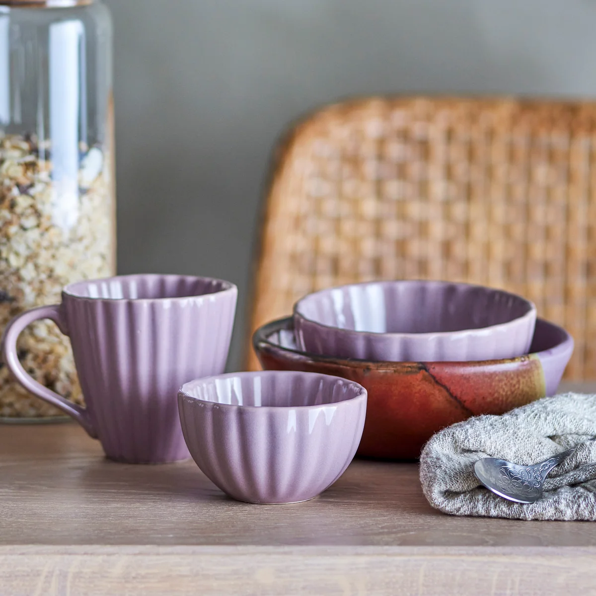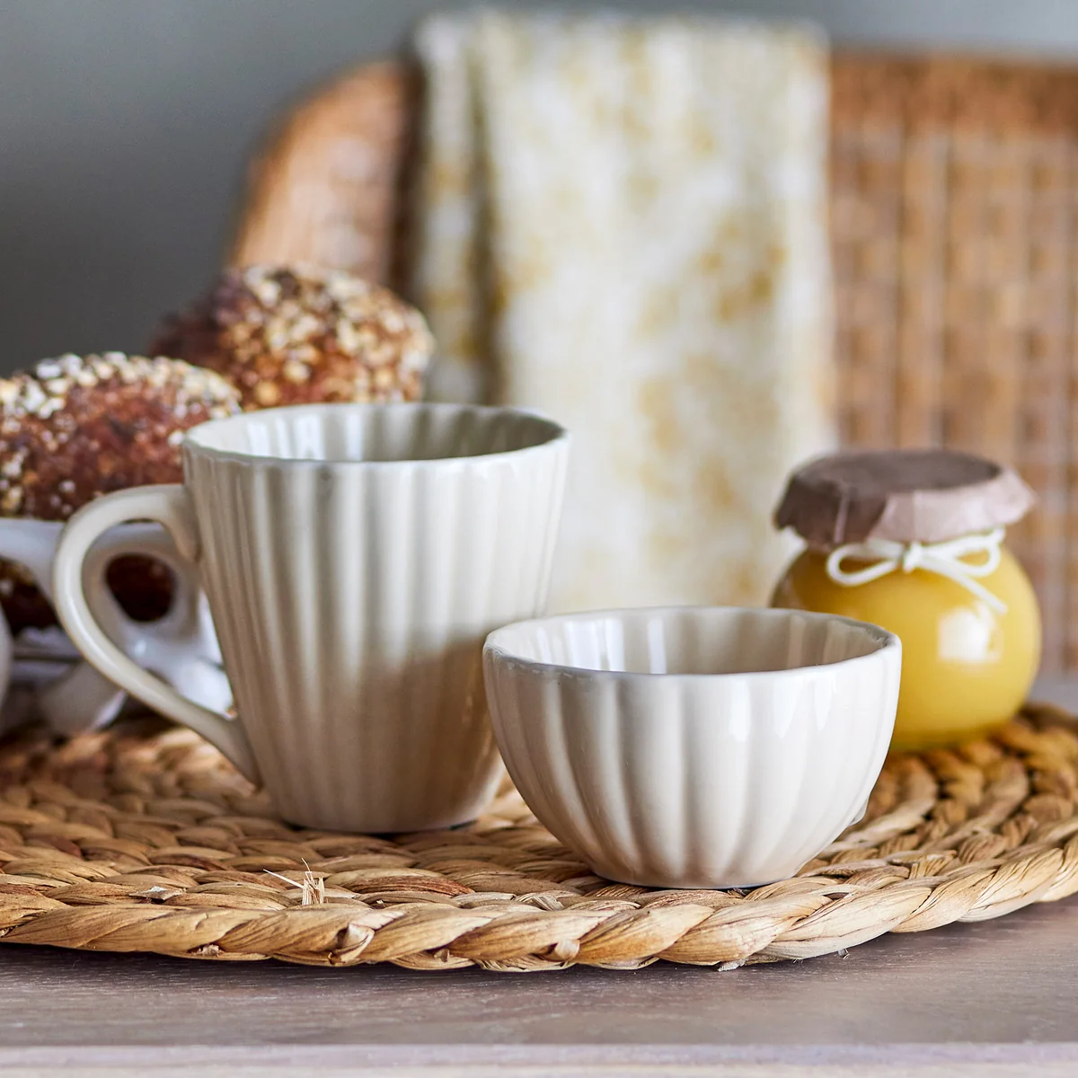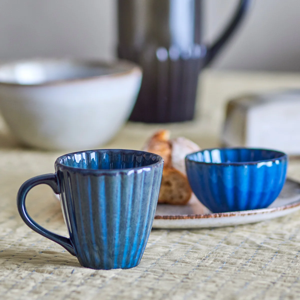 Becher aus Steingut mit Rillen-Design