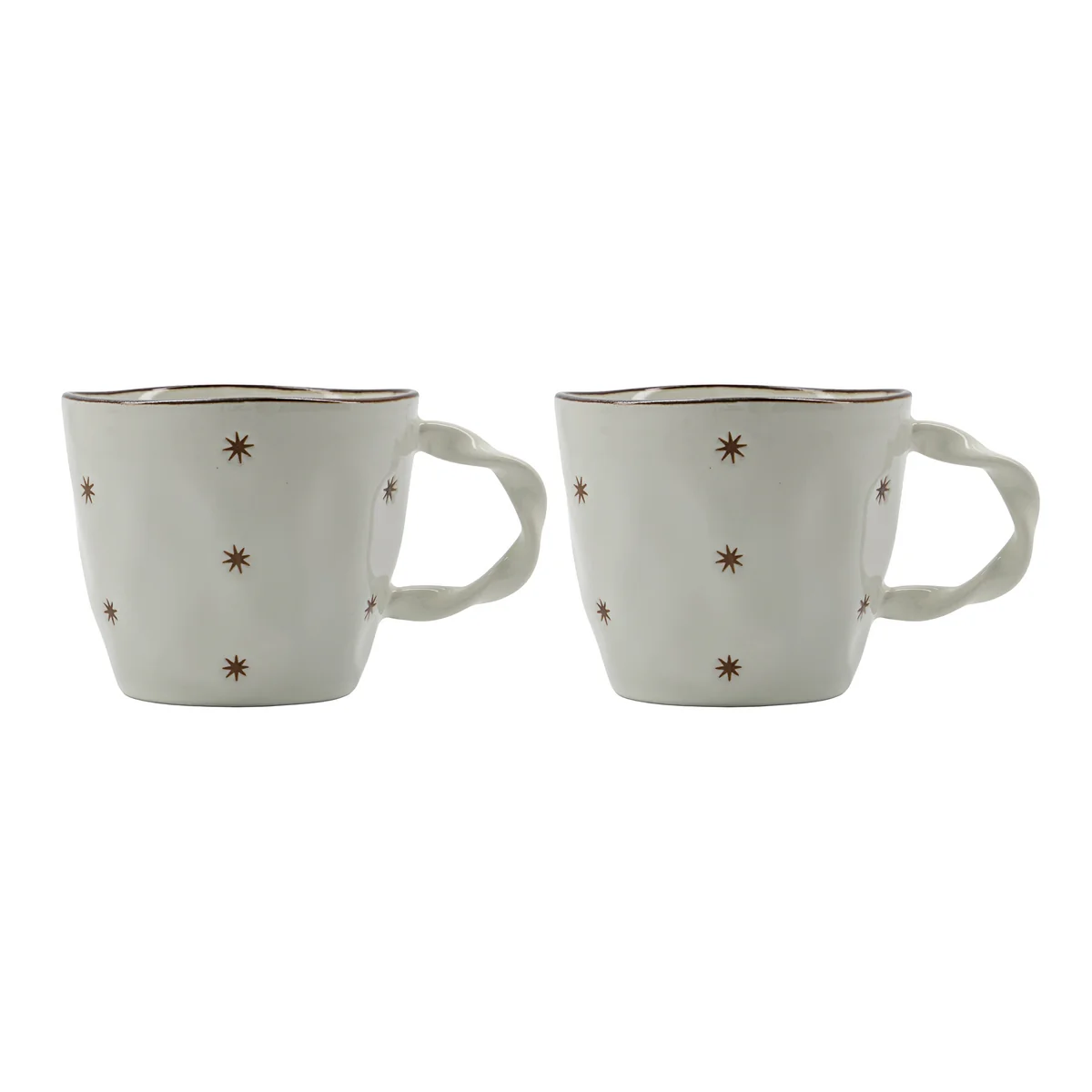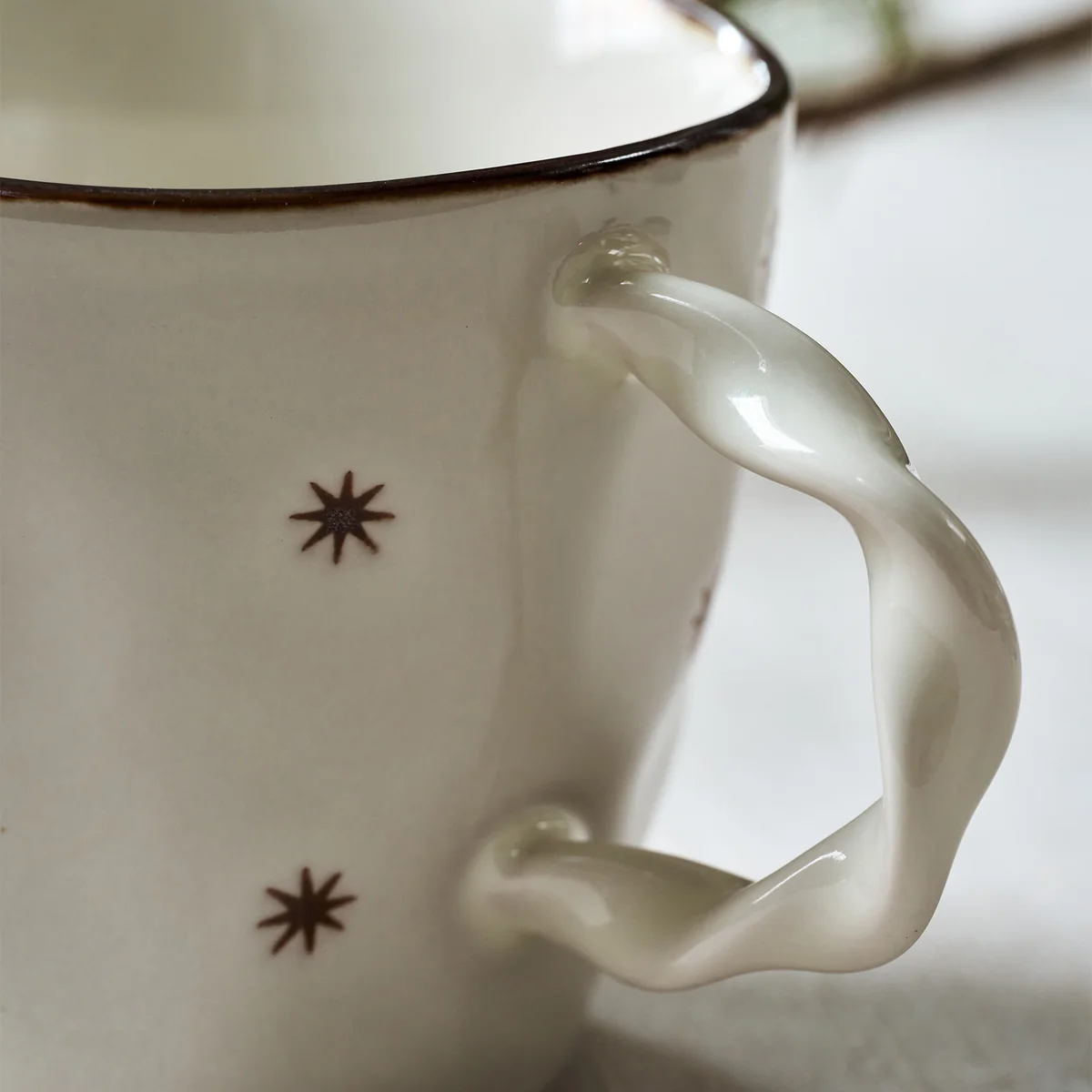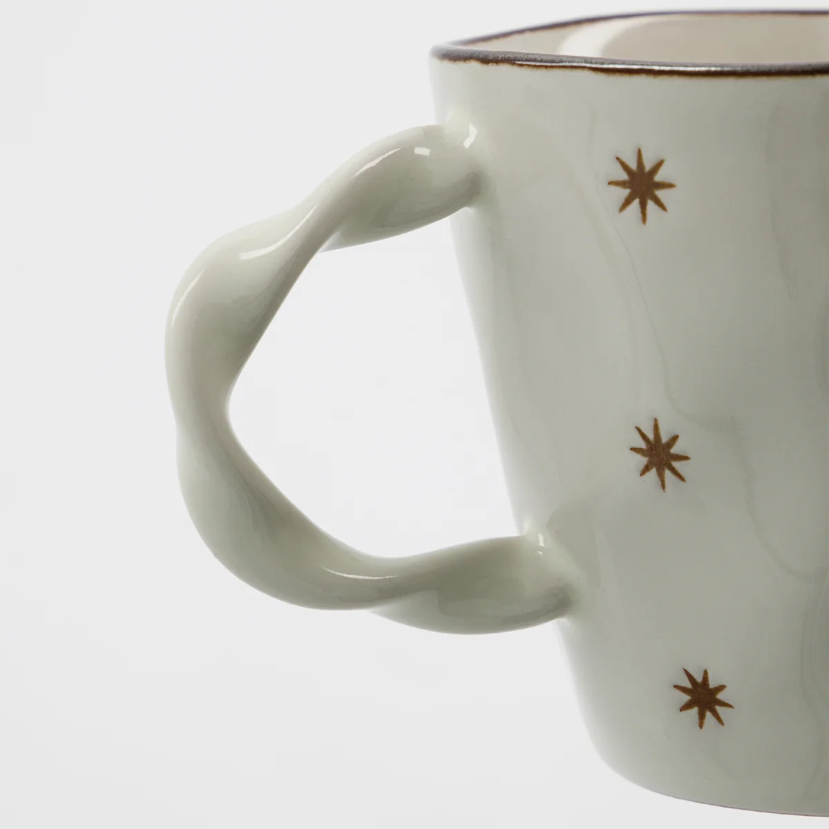 Die Starry Tasse von House Doctor wird aus glasiertem Steinzeug hergestellt und formt eine meisterhafte Verschmelzung von zeitloser Eleganz und funktionaler Schönheit. Sie verbindet die besten Eigenschaften von Keramik mit einer glatten, glasierten Oberfläche, die ein angenehmes und luxuriöses Gefühl vermittelt. Das Material verleiht der Tasse eine besondere Haptik und ein edles Aussehen, das jeden Morgenkaffee oder Tee zum Genuss macht. Mit niedlichen kleinen Sternchen läutet die Tasse feierliche Festtage zur Winterzeit ein.