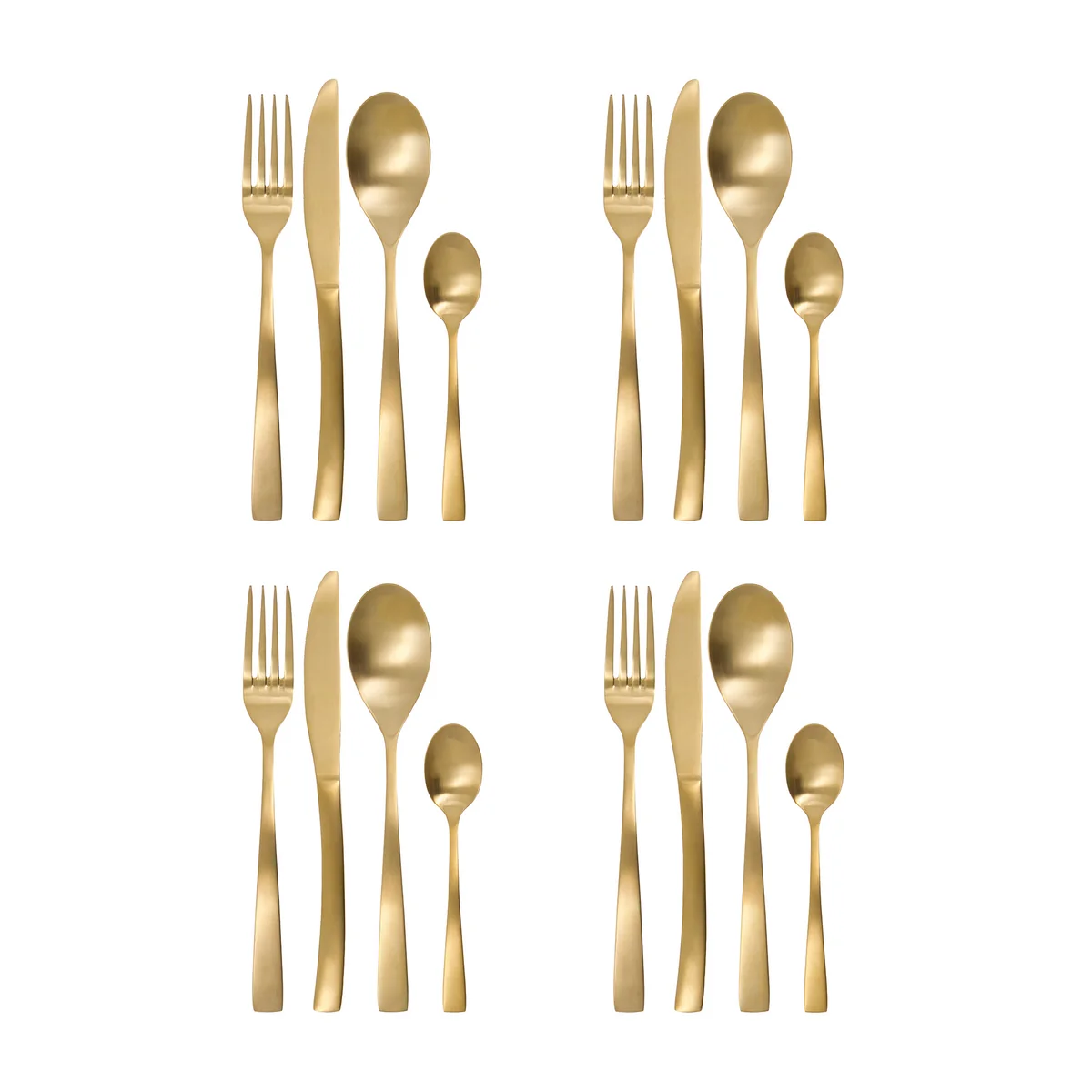 Dieses 16-teilige Besteckset in goldfarbener Optik bringt Luxus und Eleganz auf Ihren Tisch. Gefertigt aus hochwertigem Edelstahl, vereint es zeitloses Design mit Langlebigkeit und Komfort. Perfekt für besondere Anlässe und den täglichen Gebrauch.