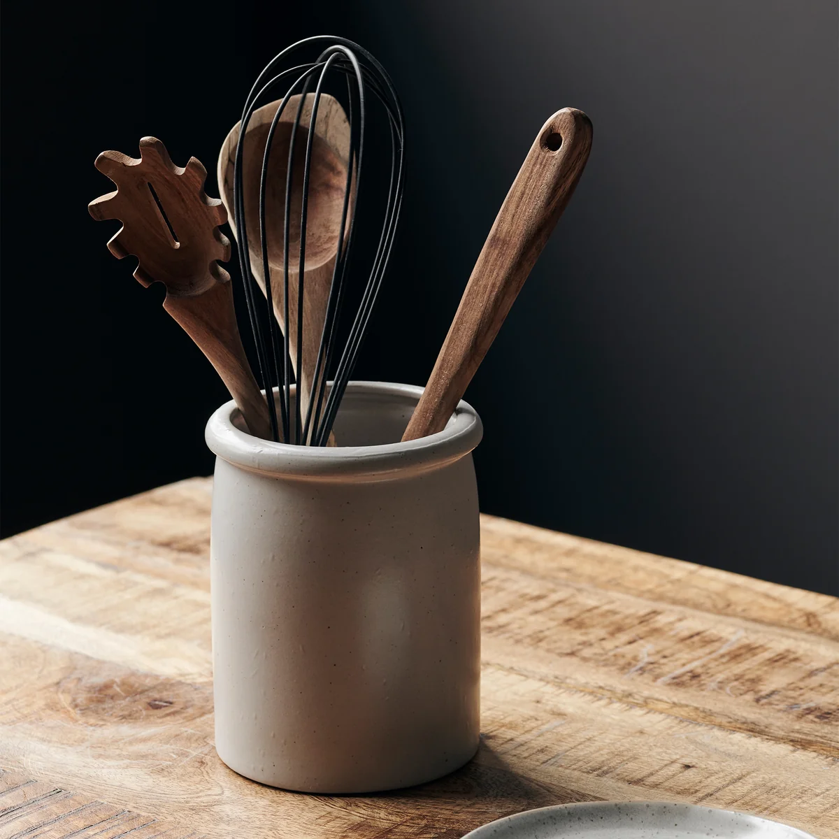 Mit dem Utensilienbehälter Pion von House Doctor stehen alle Küchenutensilien immer in Griffnähe. Der edel glasierte und oxidierte Krug bietet genügend Platz für Gegenstände und bringt Stil in die Küche. Die rustikale Optik passt außerdem zu jeder Arbeitsplatte- egal ob aus Holz, Stahl oder Stein.